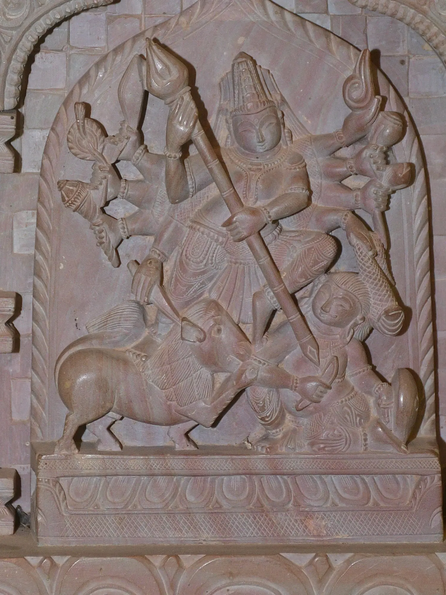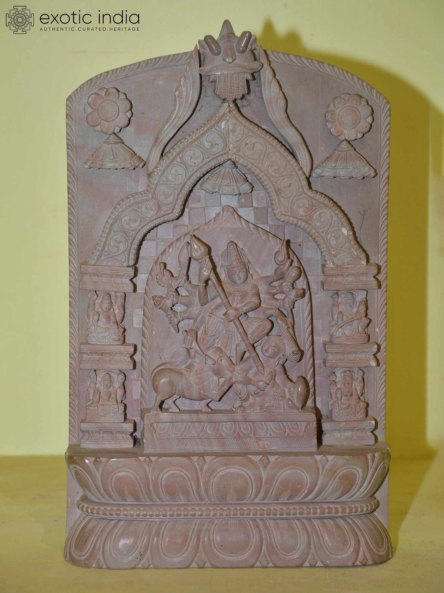 24" Goddess Durga Statue Decorated With Silver Ornaments