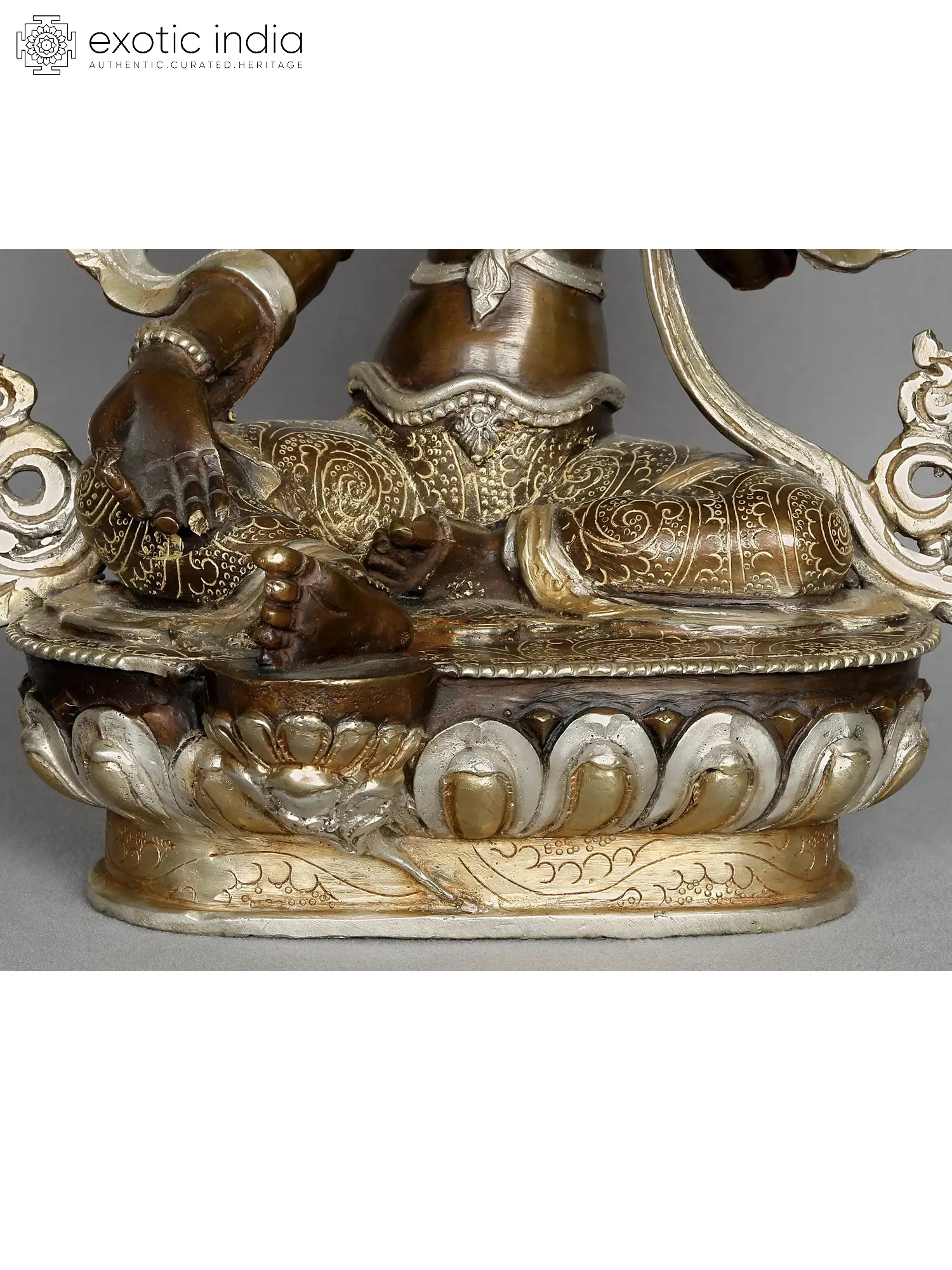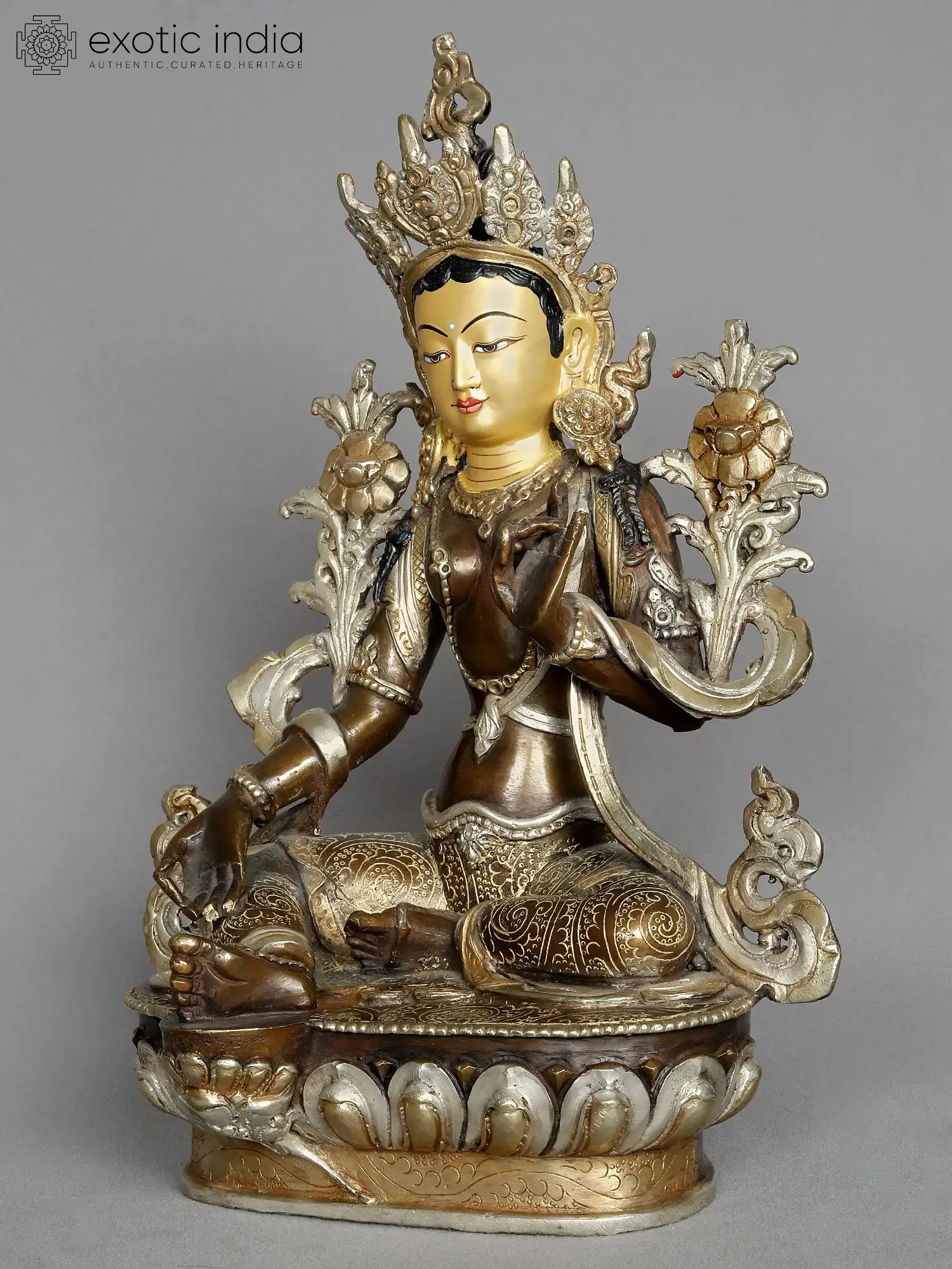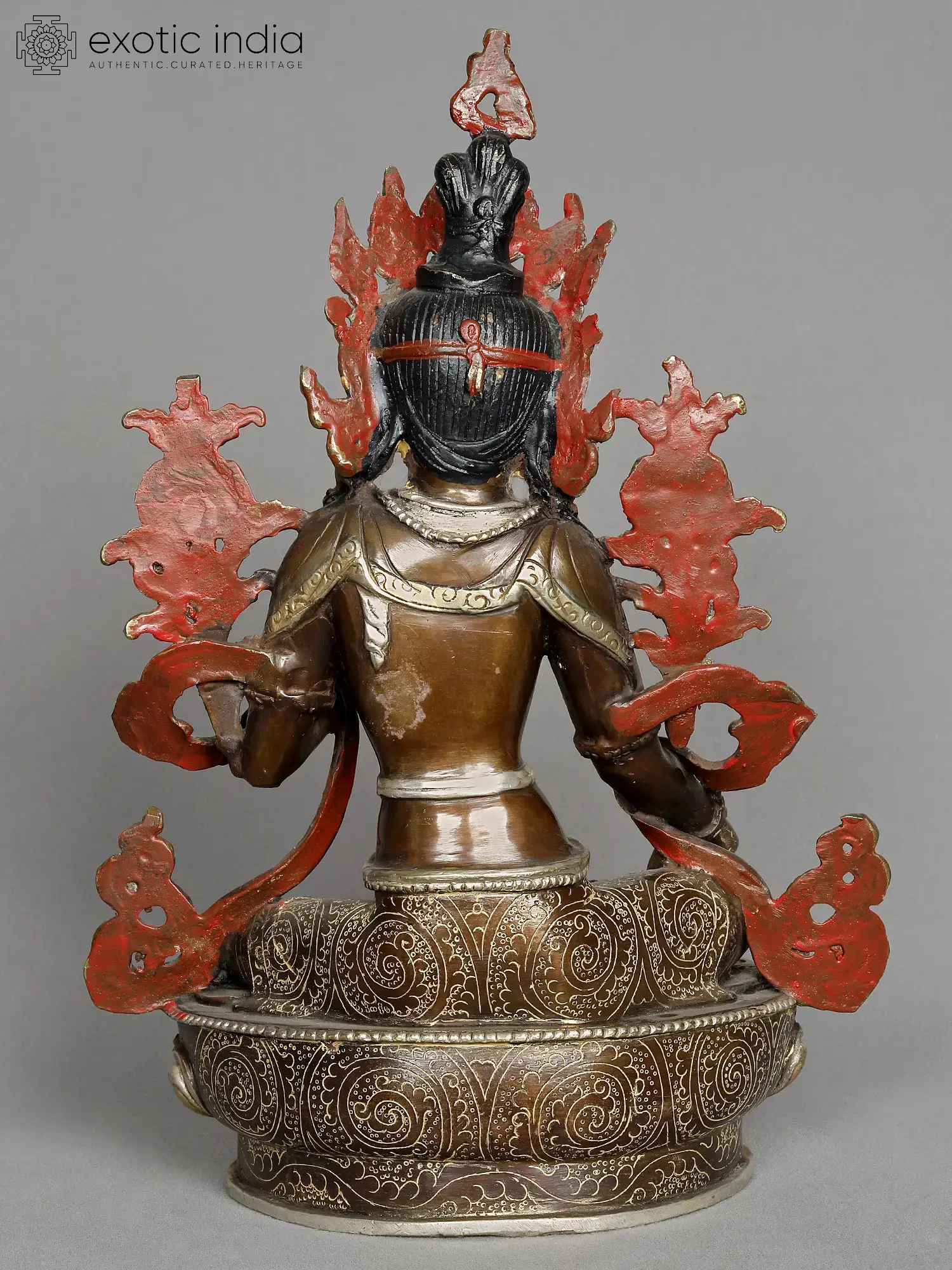Green Tara is regarded as the dynamic embodiment of Tara, the female Bodhisattva of compassion and action. Green Tara's vibrant green complexion symbolizes her swift and compassionate response to the suffering of sentient beings. Depicted with one foot outstretched, signifying her readiness to come to the aid of devotees in distress. She is typically shown with her right hand in the varada mudra, bestowing blessings and granting boons, and her left hand in the abhaya mudra, dispelling fear and offering protection., often invoked for protection, healing, and guidance on the spiritual path.