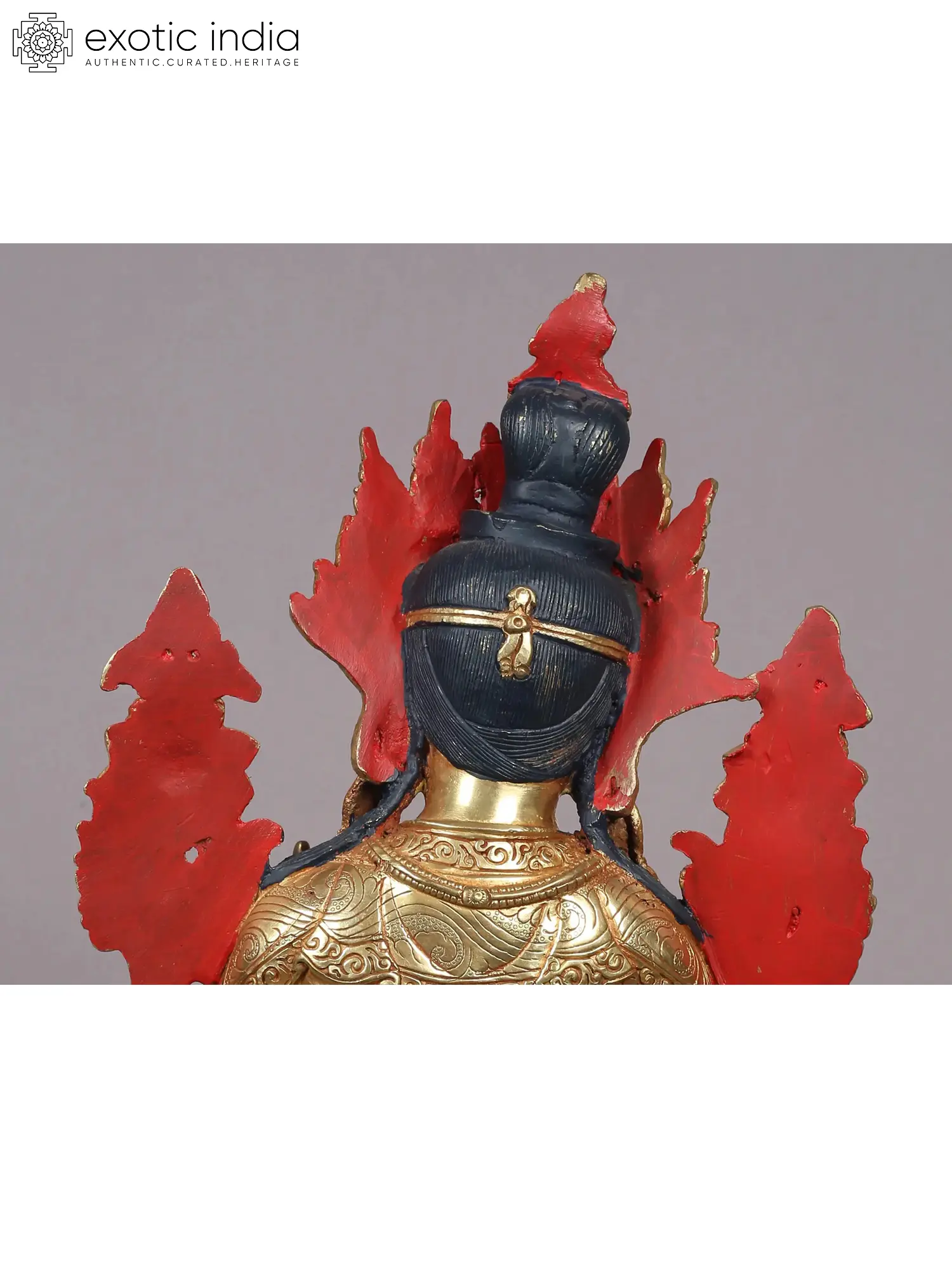 Tara's green color symbolizes youthful vigor, activity, and karma. As she belongs to the Western Buddha Lotus line, her secondary color is red.