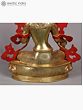 The blue lotus, Utpala, is a prominent feature in her iconography. Utpala flowers open at sunset, releasing their fragrance and are associated with the Moon, symbolizing longevity and the promise of relief from suffering day and night.