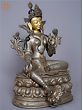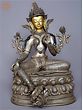 12" Goddess White Tara Idol Seated on Throne | Gilded Copper Statue from Nepal