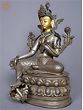 15'' Avalokiteśvara Idol with Stone Work from Nepal | On Royal Throne | Crystal With Silver