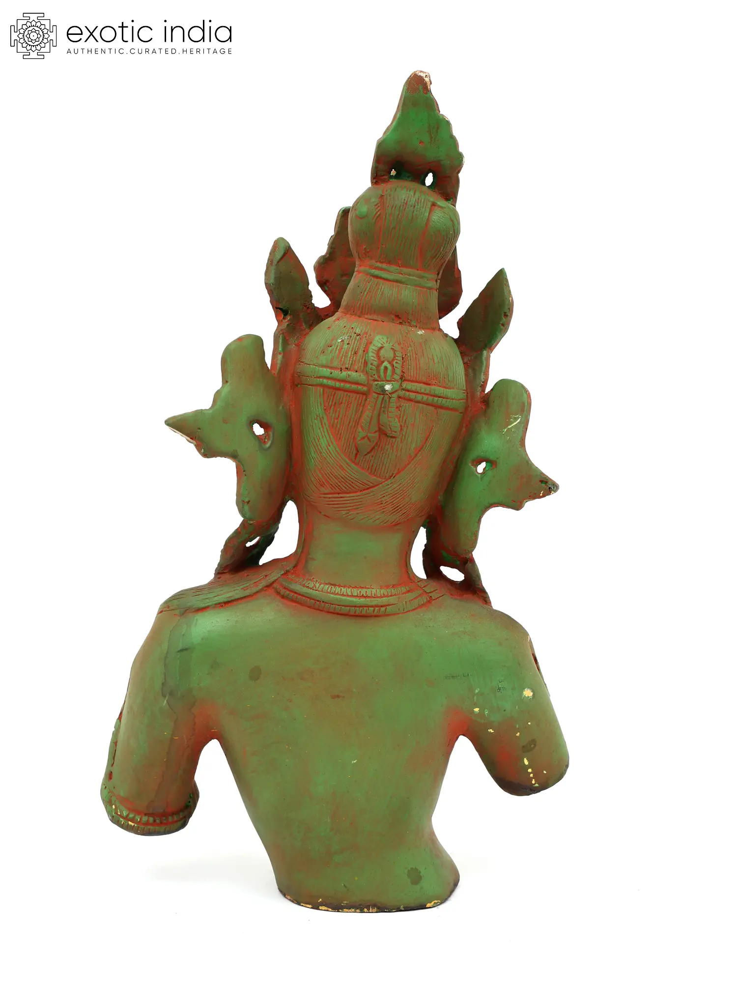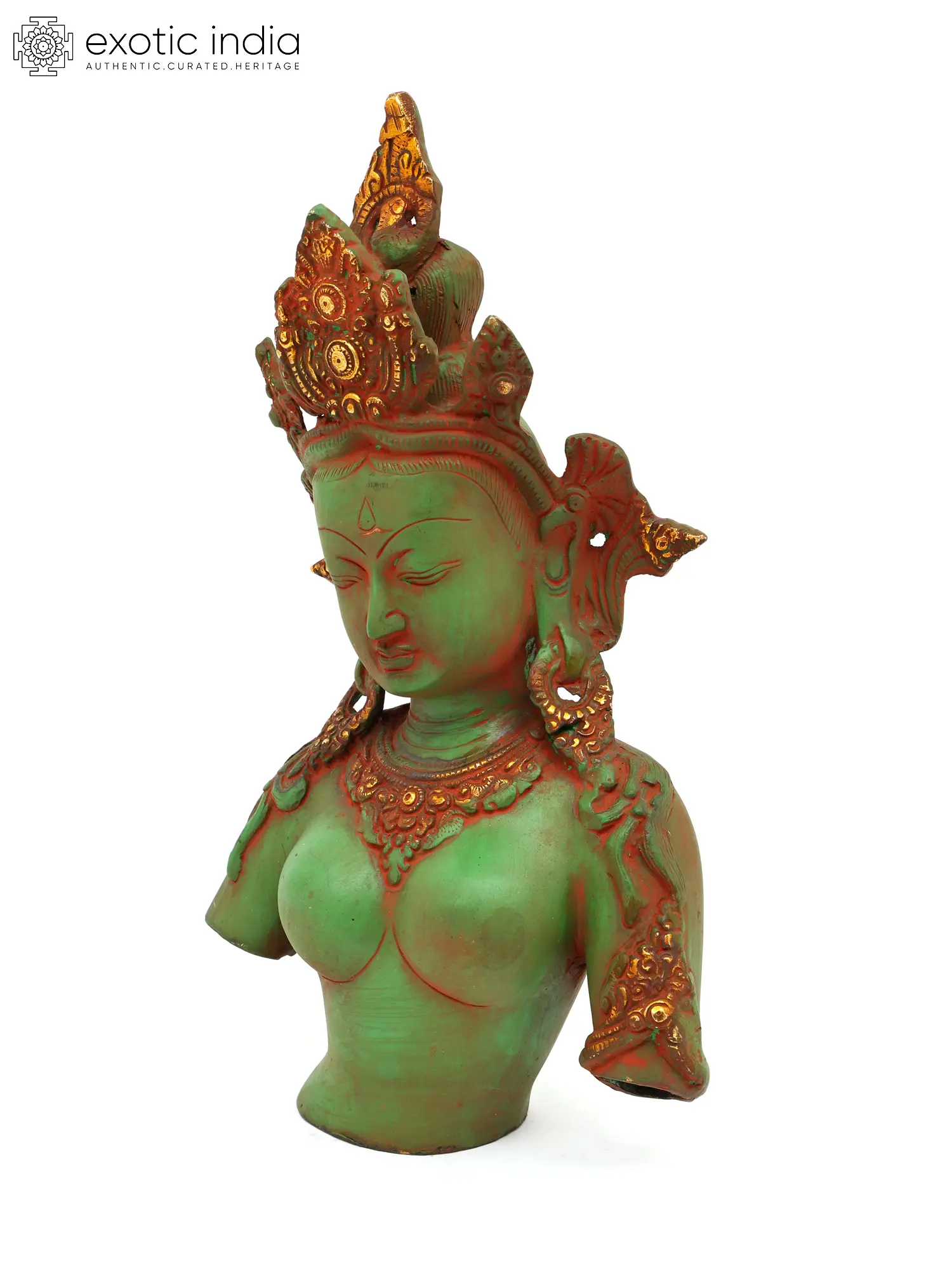 An extended bust of the divine beauty, Princess Tara. A Bodhisattva of the Buddhist heavens, Tara is unpralleled in both wisdom and beauty. The murti of Her that you see on this page is a flawless brass sculpture, each line and curve of Her form having been sculpted with the greatest skill and shraddha.