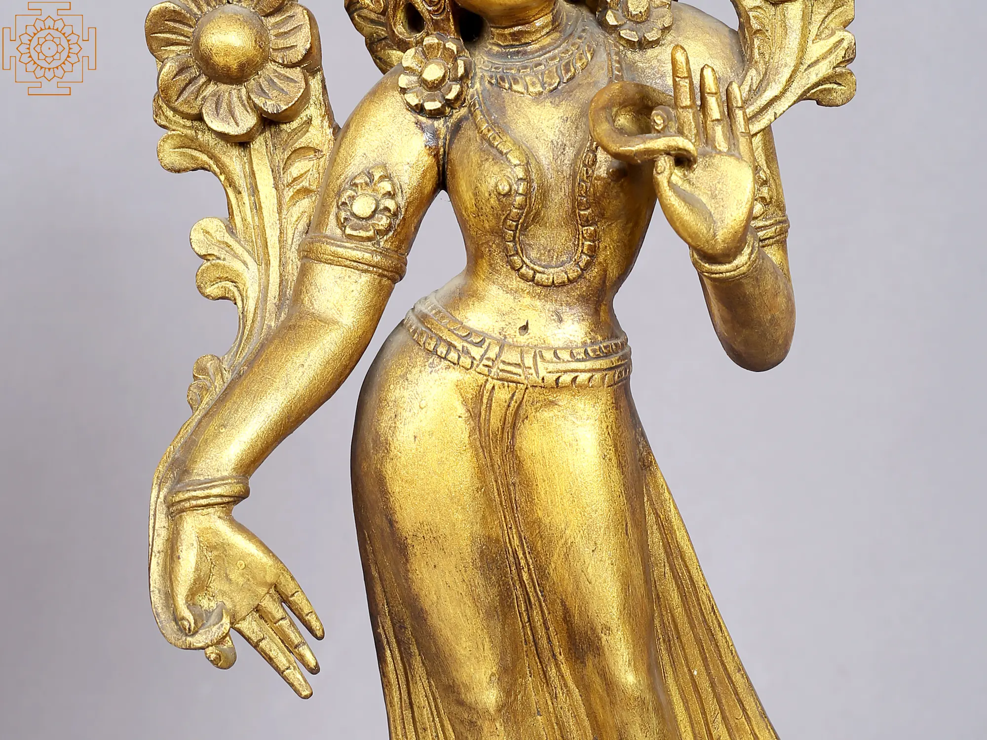 37" Myrobalan Buddha Inlayed Brass Statue | Indian Handcrafted Idol
