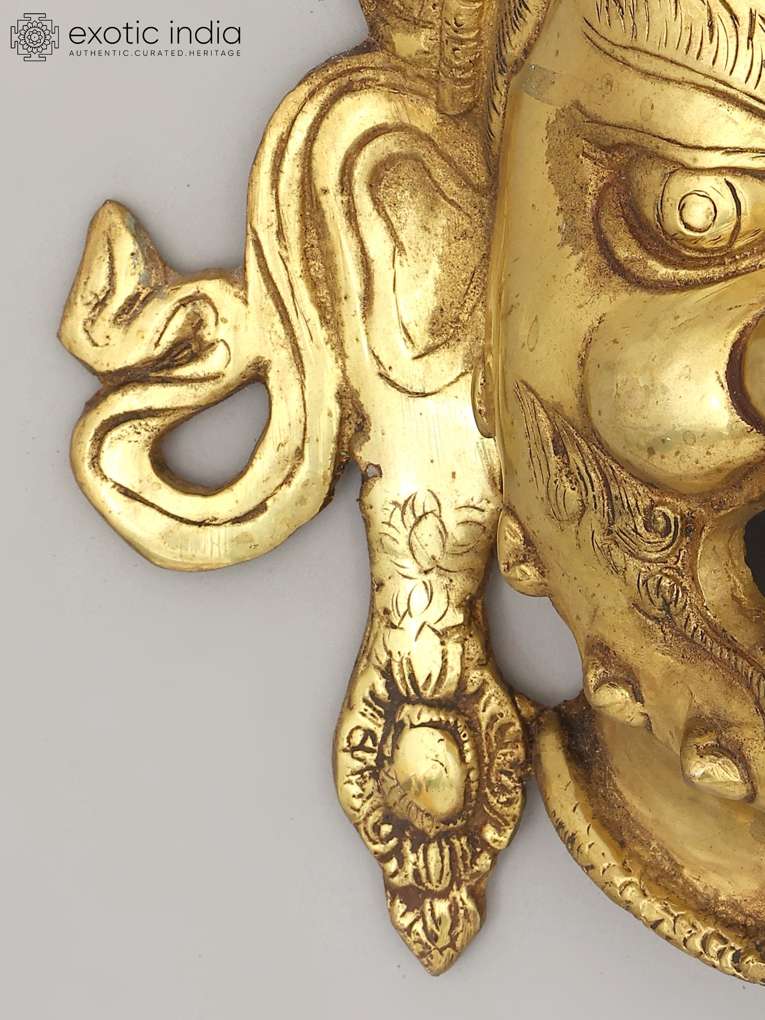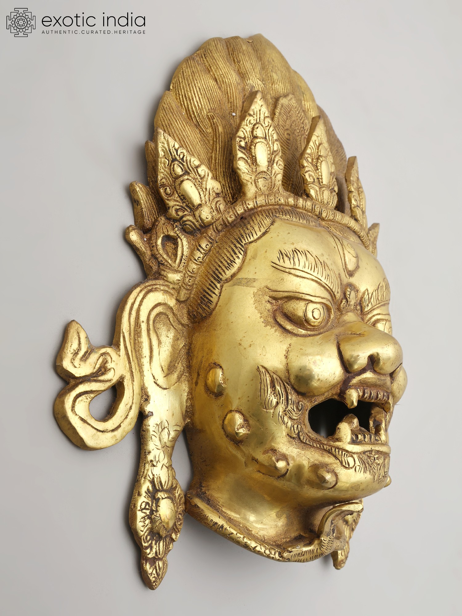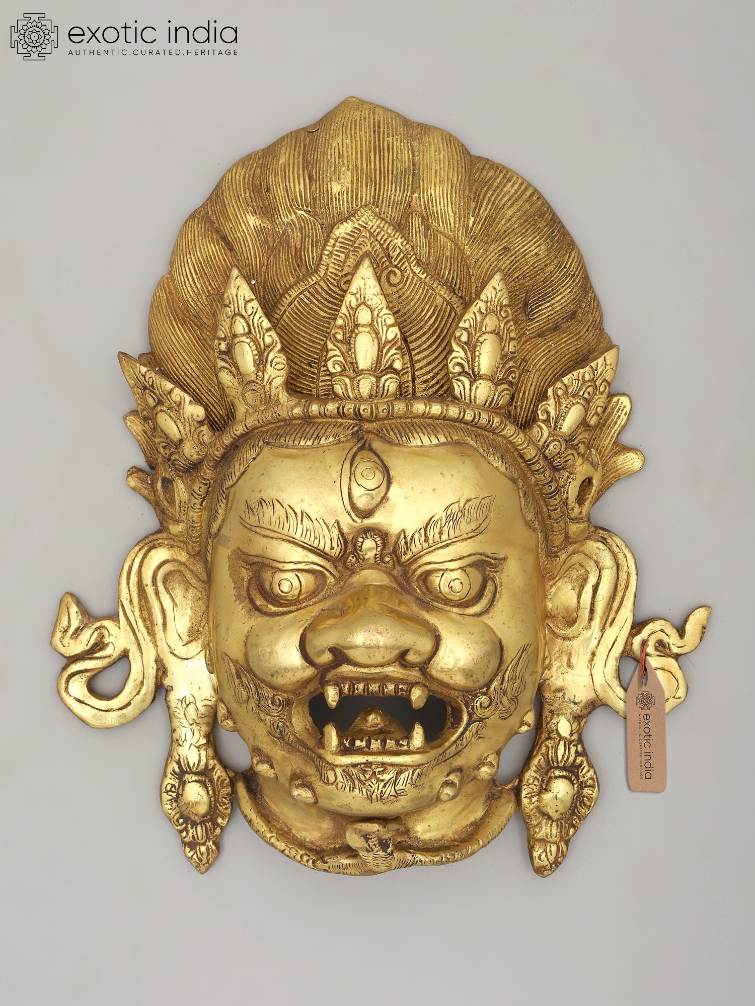 24" Superfine Large Bhairava Mask Wearing Serpents Crown - Wall Hanging In Brass | Handmade | Made In India