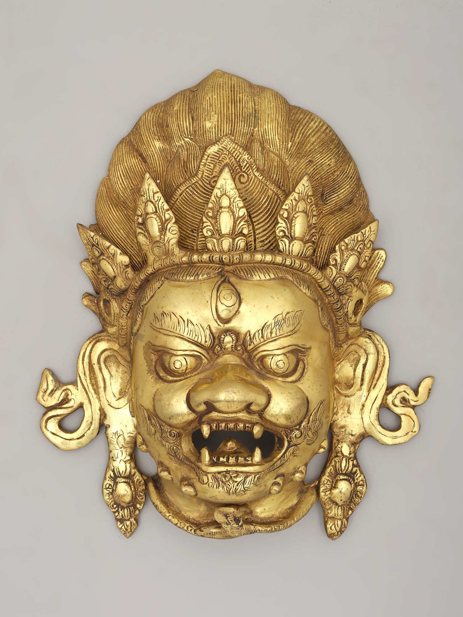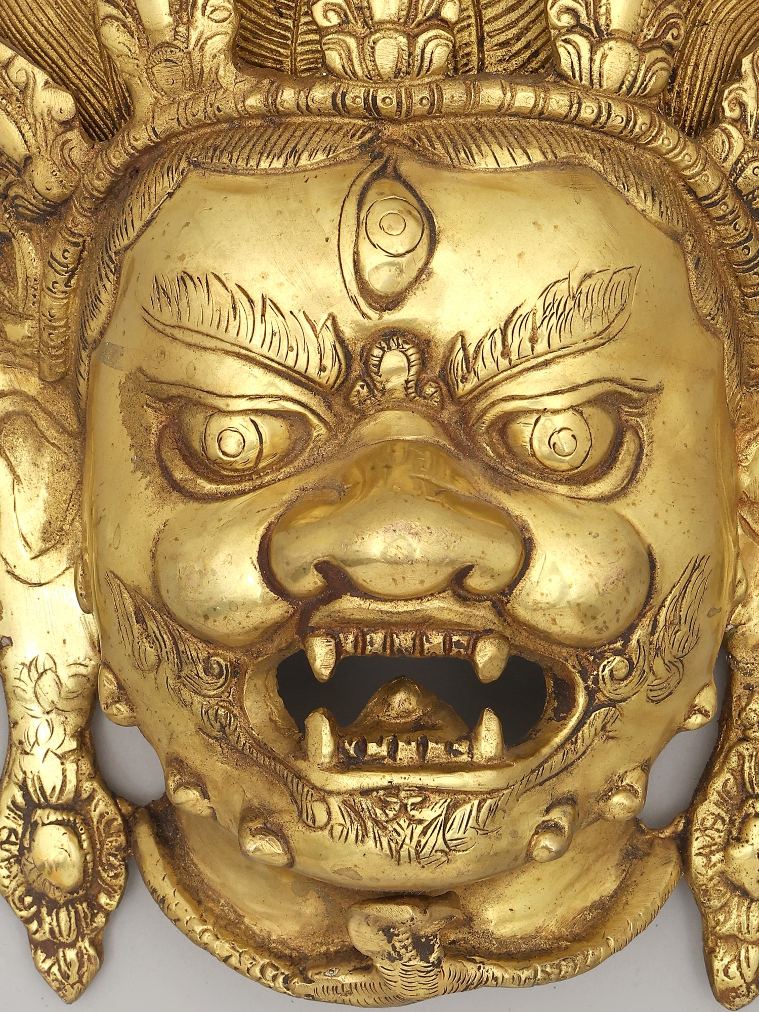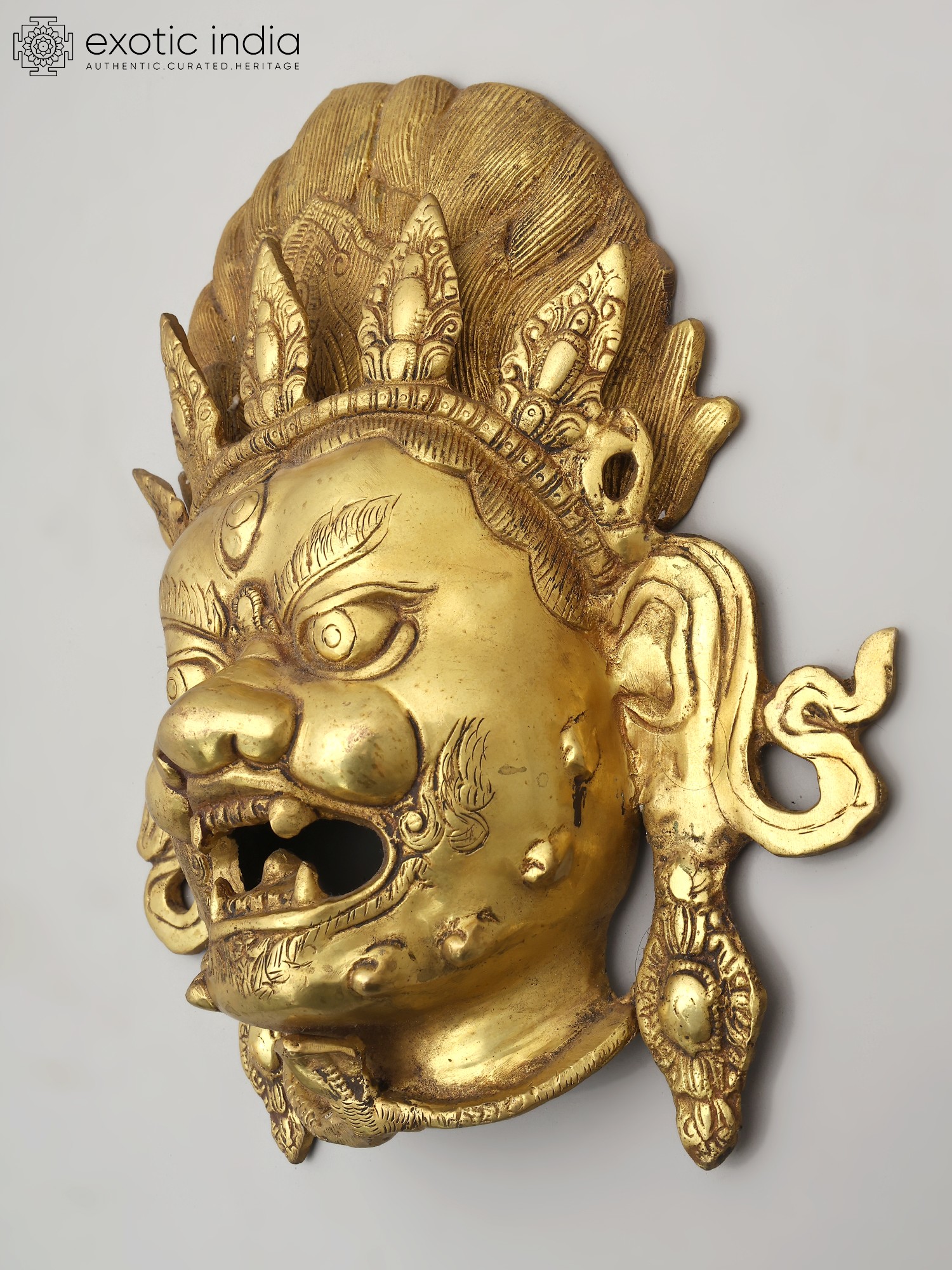 24" Superfine Large Bhairava Mask Wearing Serpents Crown - Wall Hanging In Brass | Handmade | Made In India