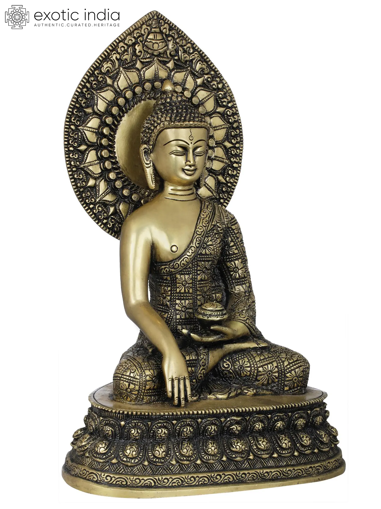 13" Lord Buddha Seated on Double Lotus In Brass | Handmade | Made In India