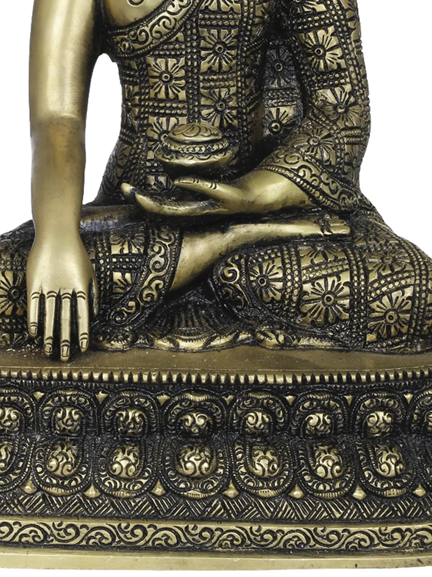 This statue is a testament to the enduring artistry and rich cultural heritage of India. Each curve, each line, and every minute detail is a product of painstaking handcrafting, passed down through generations of master artisans. The choice of brass, a metal revered for its durability and auspicious properties, further enhances the spiritual significance and aesthetic appeal of the sculpture. This piece is not merely an object of art but a conduit for peace, mindfulness, and spiritual connection, bringing the tranquil presence of the enlightened one into your home or sacred space. It serves as a constant reminder of the path to liberation and the potential for inner peace within us all.