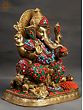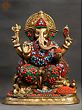 13" Lord Ganesha with Fine Quality Inlay Work In Brass | Handmade | Made In India