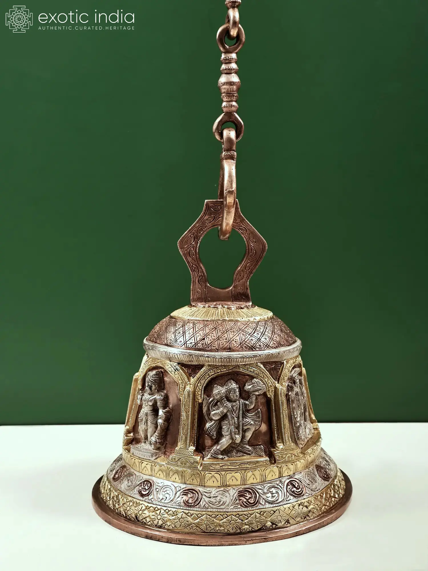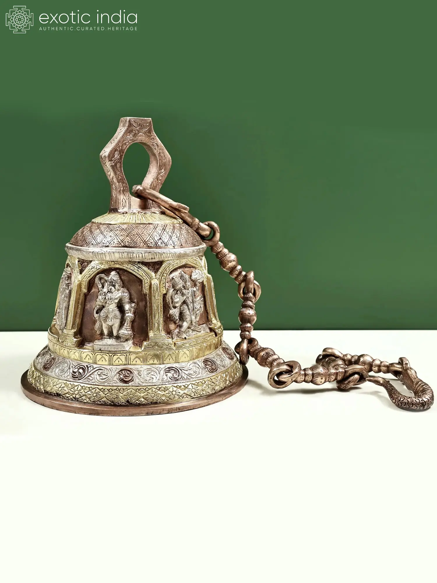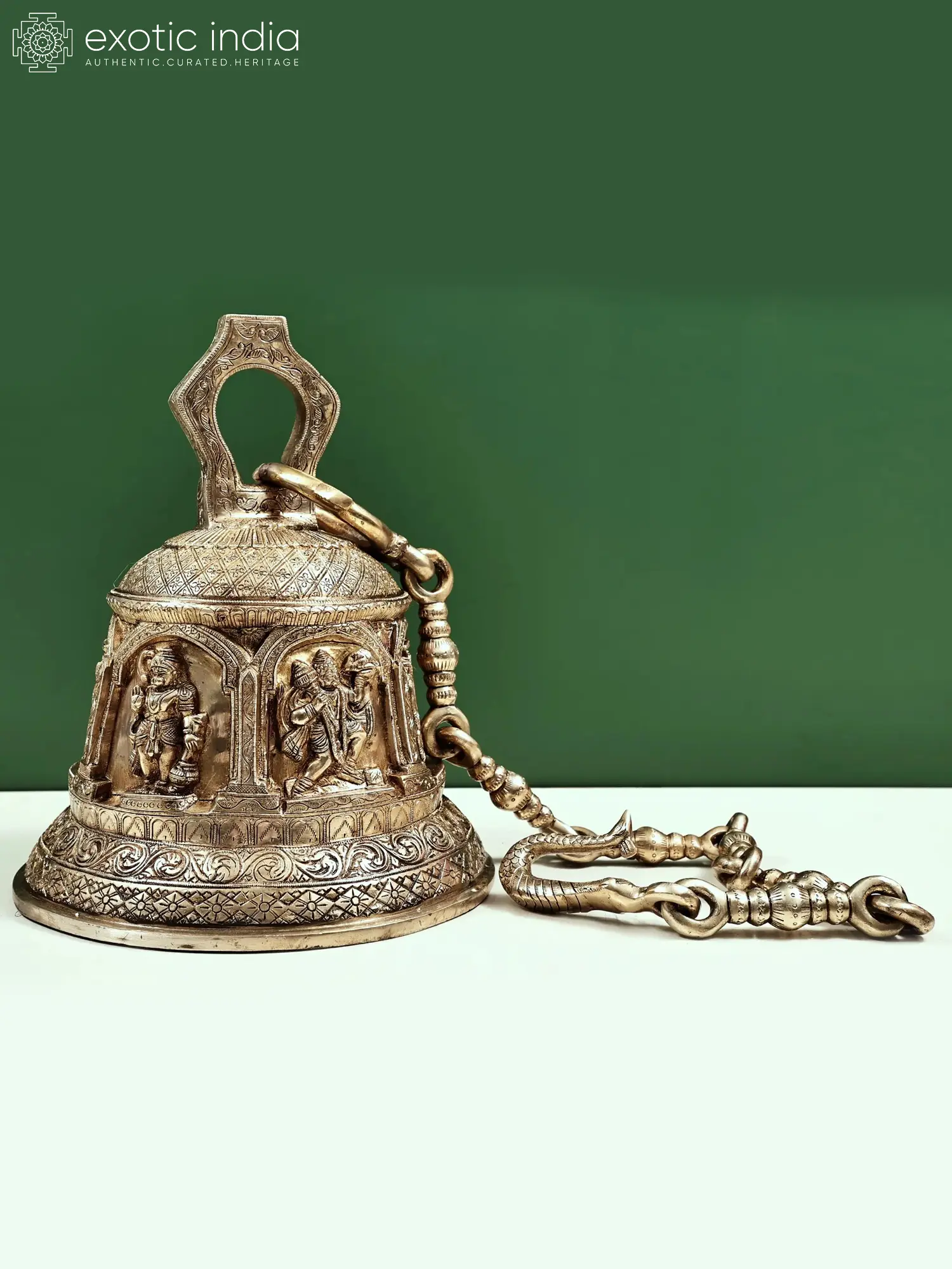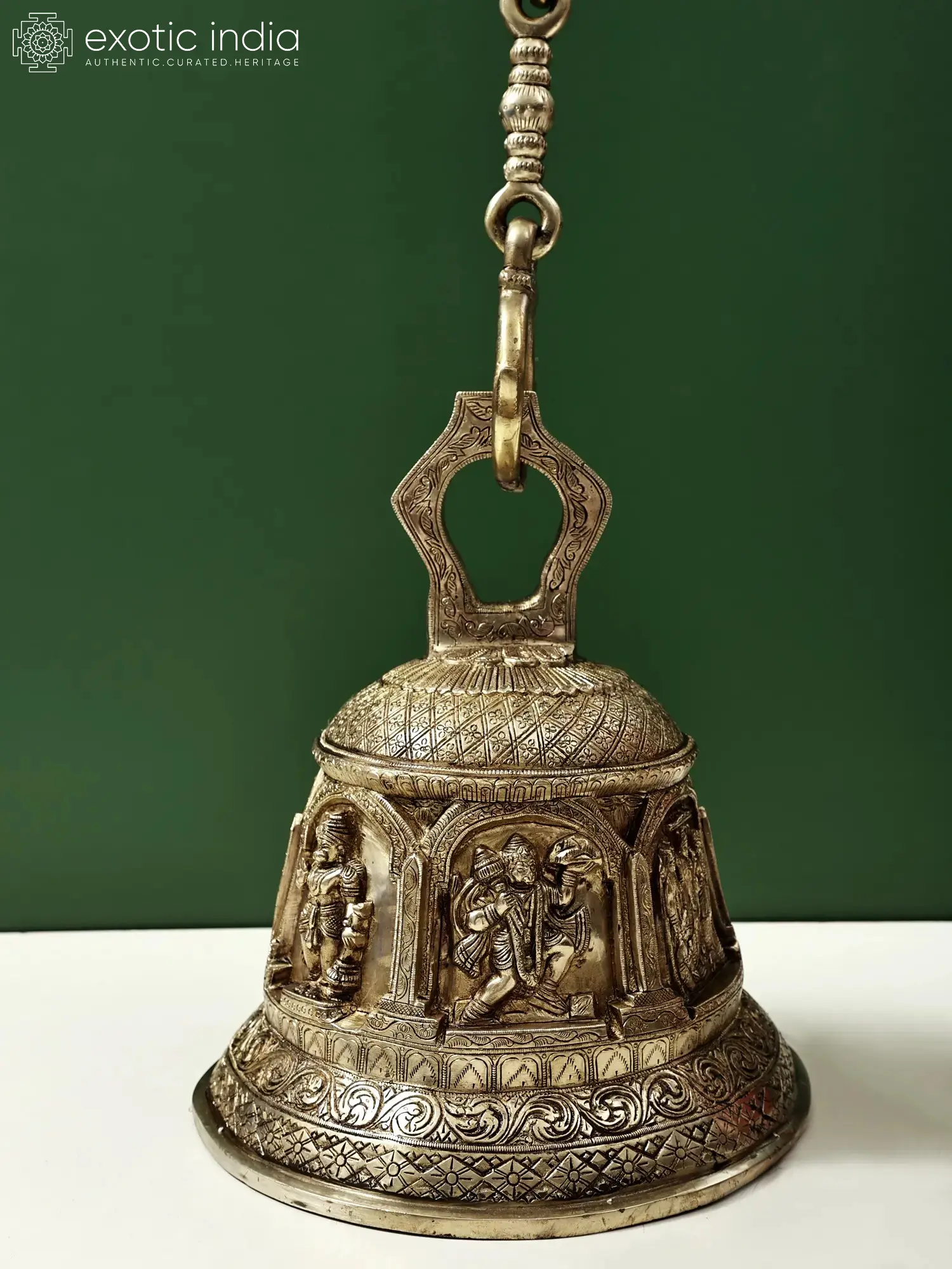 Bring home this fortunate protective symbol in the form of a brass bell to boost the positive energy in your household. Brass bells, which are popular in Hindu houses, are said to be a link between the physical and spiritual realms. The bell is made of solid brass and has a beautiful golden color that represents purity and divinity. It embodies the essence of Lord Hanuman's undying devotion and enormous power, with detailed engravings and motifs representing him in many heroic stances. This Lord Hanuman Temple Hanging Bell brings a sense of holiness and calm to any temple or meditation place. When devotees ring the bell, its lovely music fills the room, purifying it and summoning Lord Hanuman's heavenly presence.