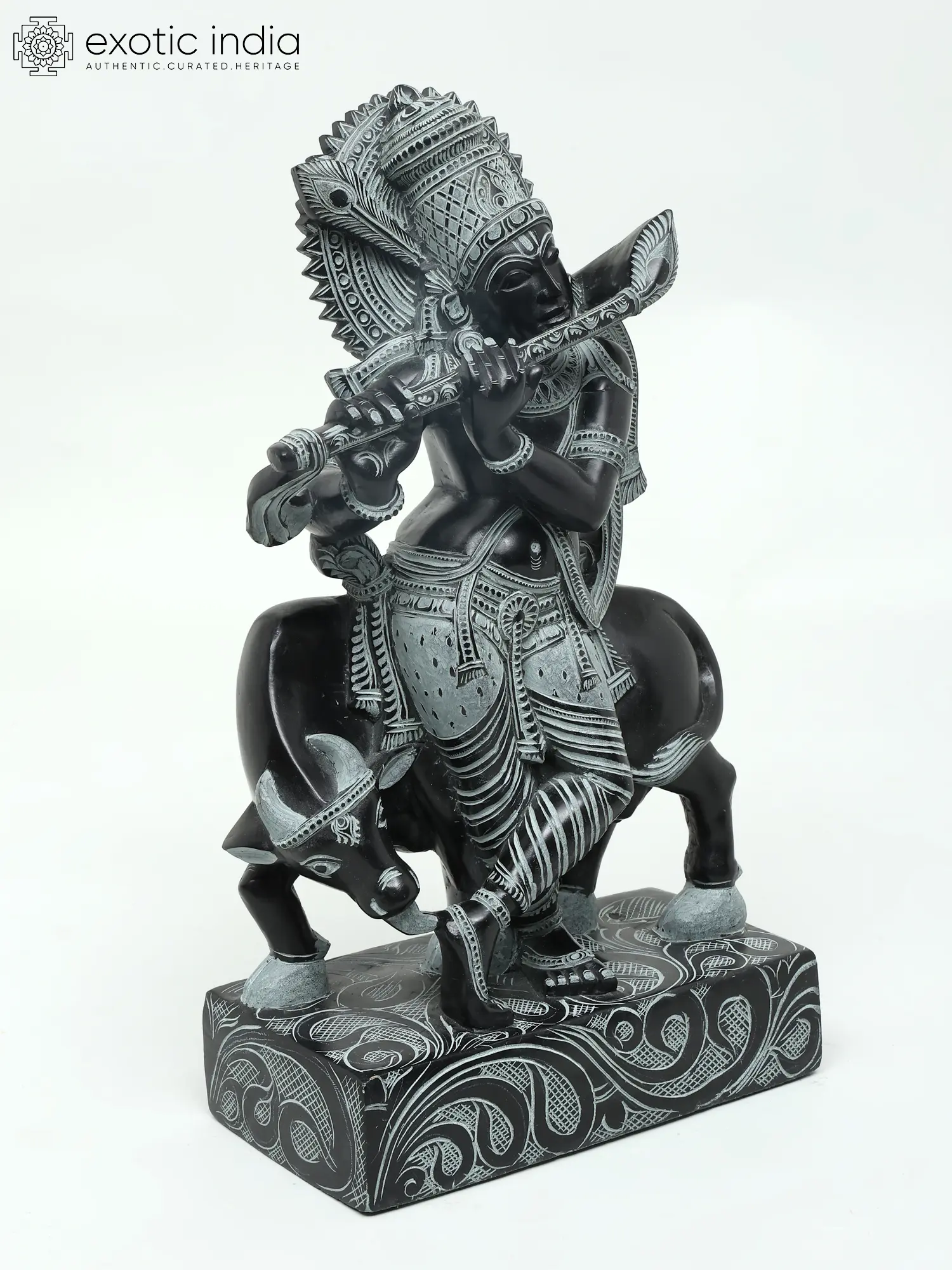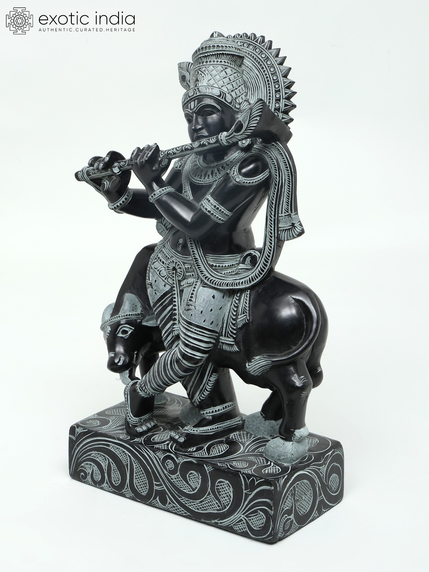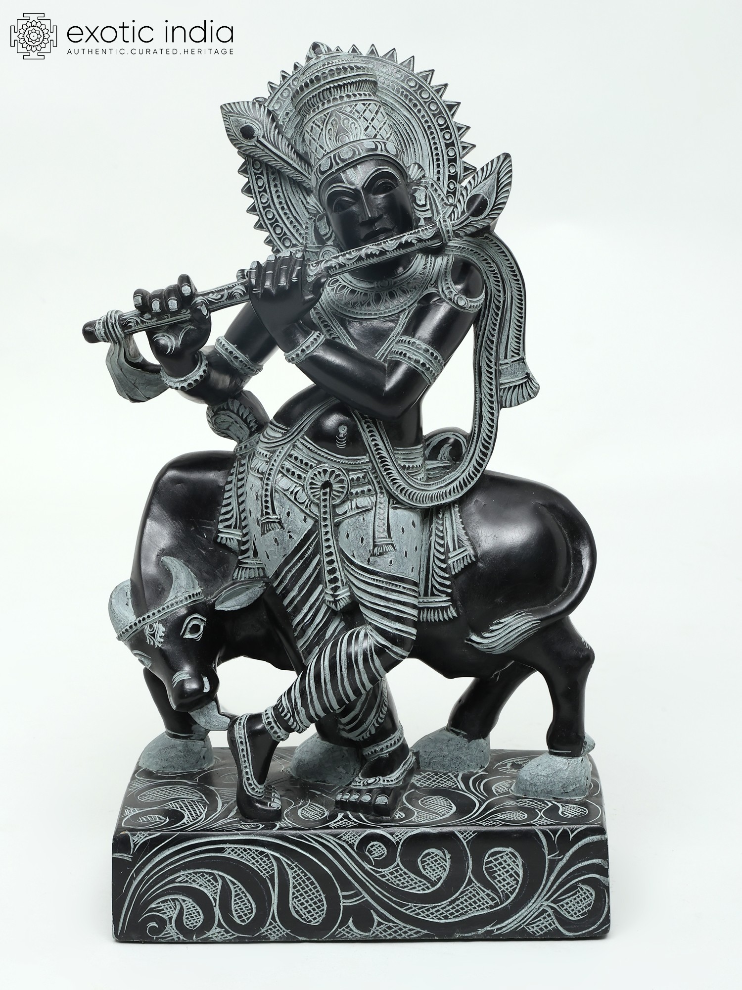 50" Pair of Goddess Maheshwari Hand Carved Granite Stone Statue