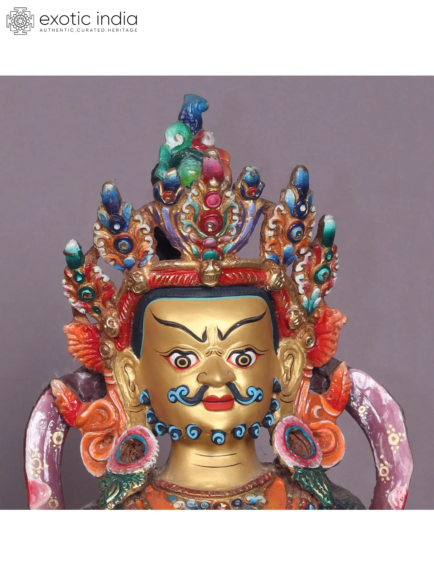 Kubera is the lord of wealth and prosperity in Hindu mythology. This Colorful depiction of Kubera highlights his association with wealth and abundance.