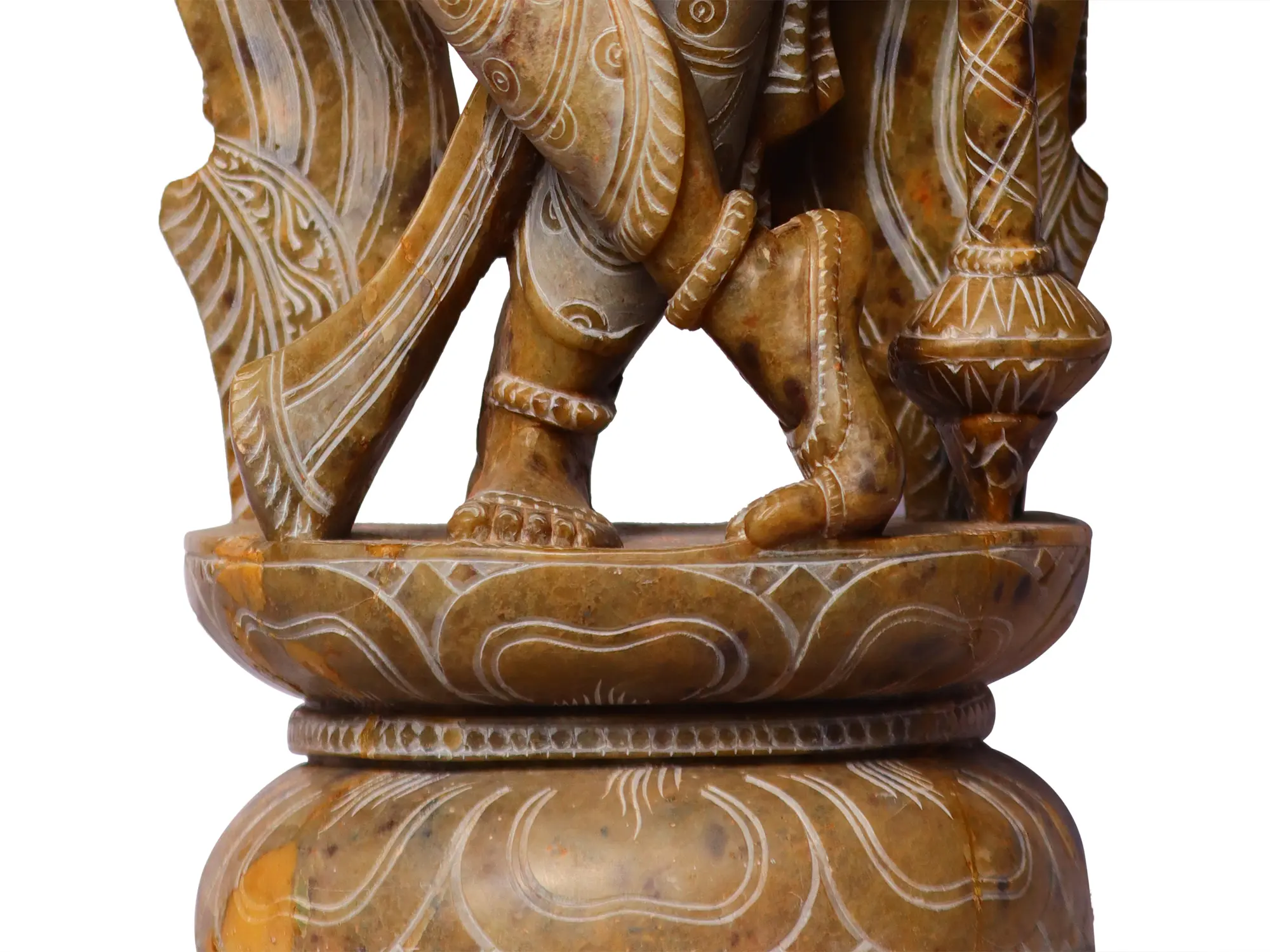 The art of stone carving in Odisha has a history stretching back centuries, with temples adorned with intricate sculptures that tell stories of gods, goddesses, and epic battles. This particular piece carries that legacy forward, showcasing the deep understanding of form and aesthetic sensibility that is characteristic of Odiya craftsmanship. The natural variations in the stone add to its unique character, making each sculpture a one-of-a-kind masterpiece. Display this Lord Krishna sculpture as a testament to divine beauty and a cherished piece of cultural heritage.
