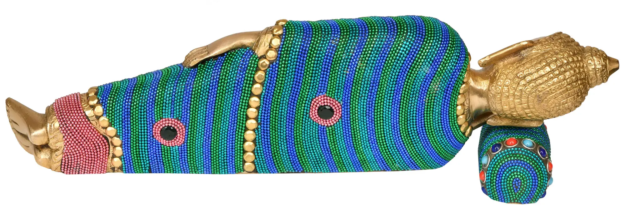 10" Brass Mahaparinirvana Buddha Statue (Robes Decorated with Floral Motifs)