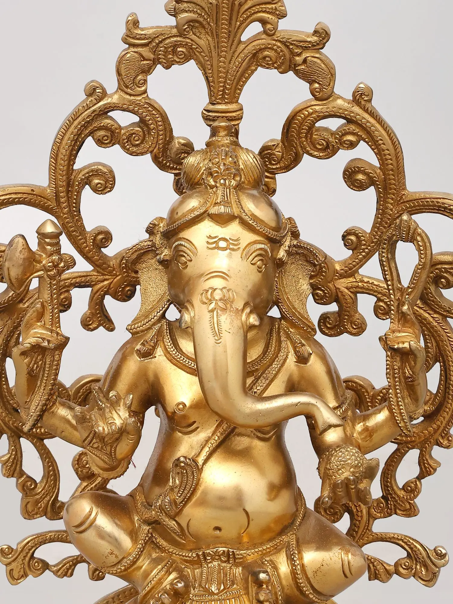 Invite auspicious beginnings and overcome obstacles with this commanding brass representation of the beloved deity. Its serene presence and intricate detailing will infuse your space with a sense of divine grace and enduring prosperity.