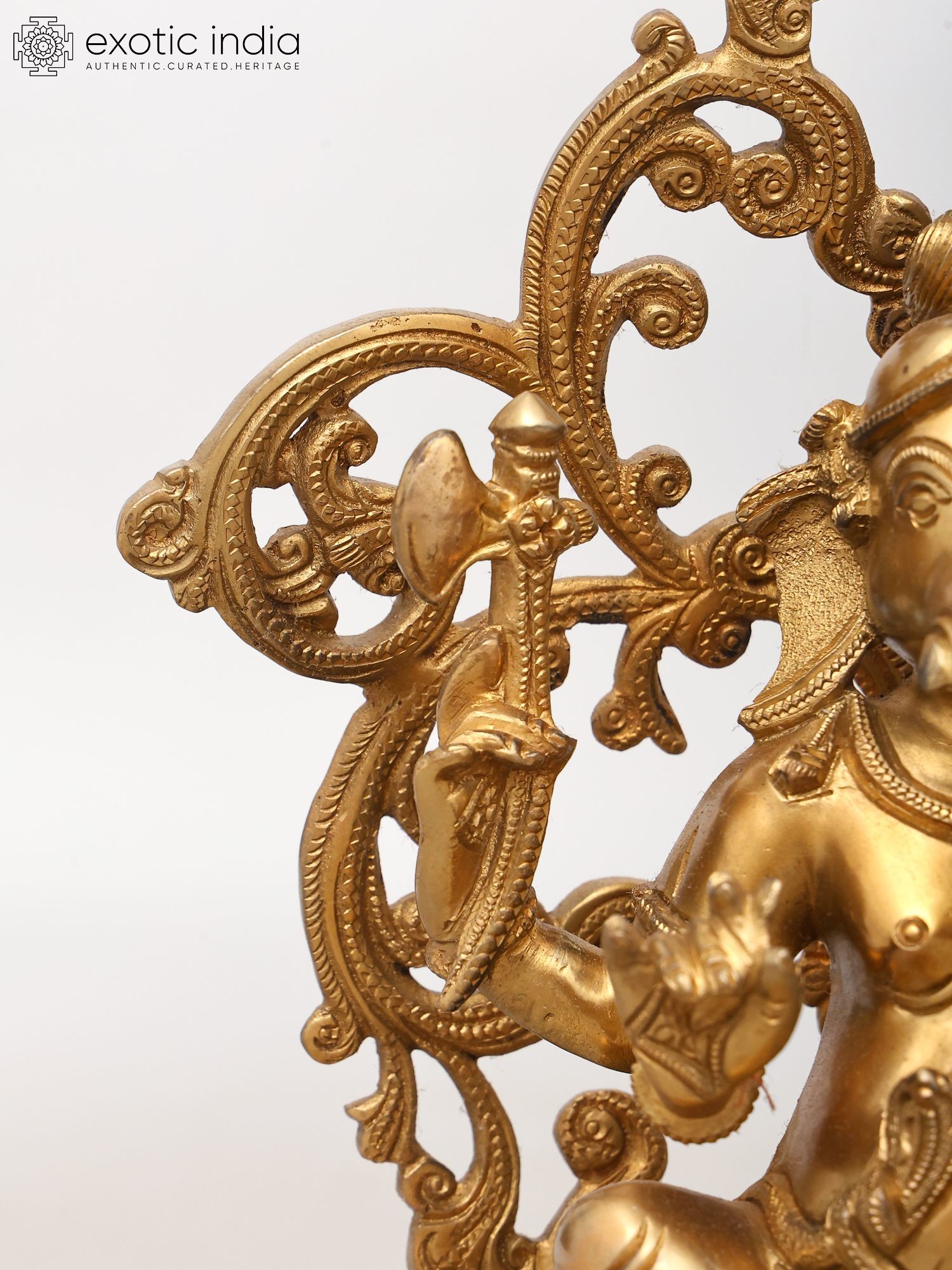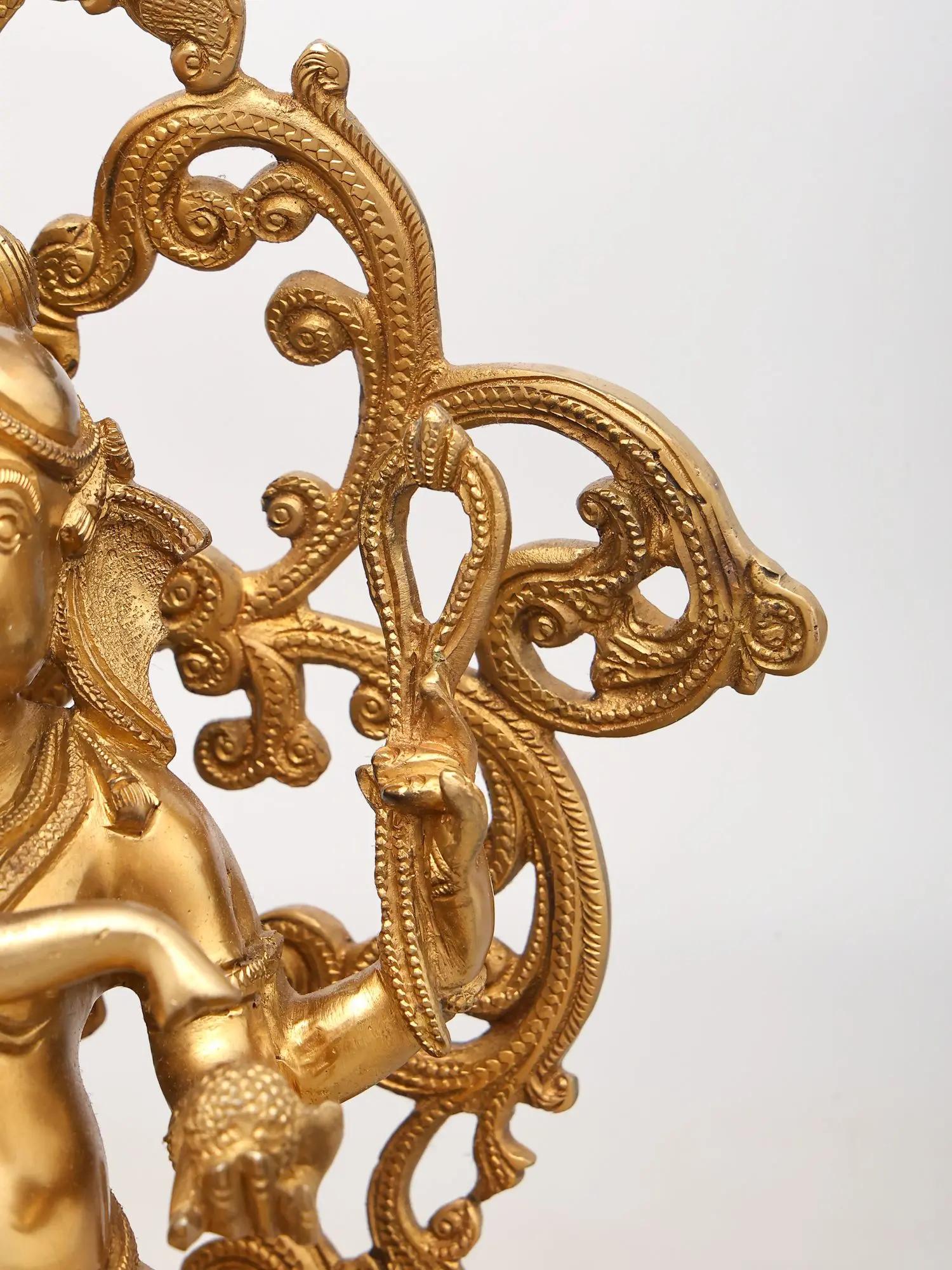 The intricate Prabhavali (ornate halo) framing the deity enhances its divine presence.