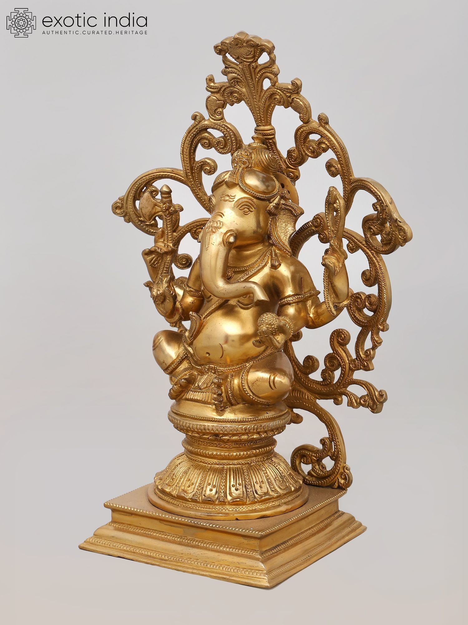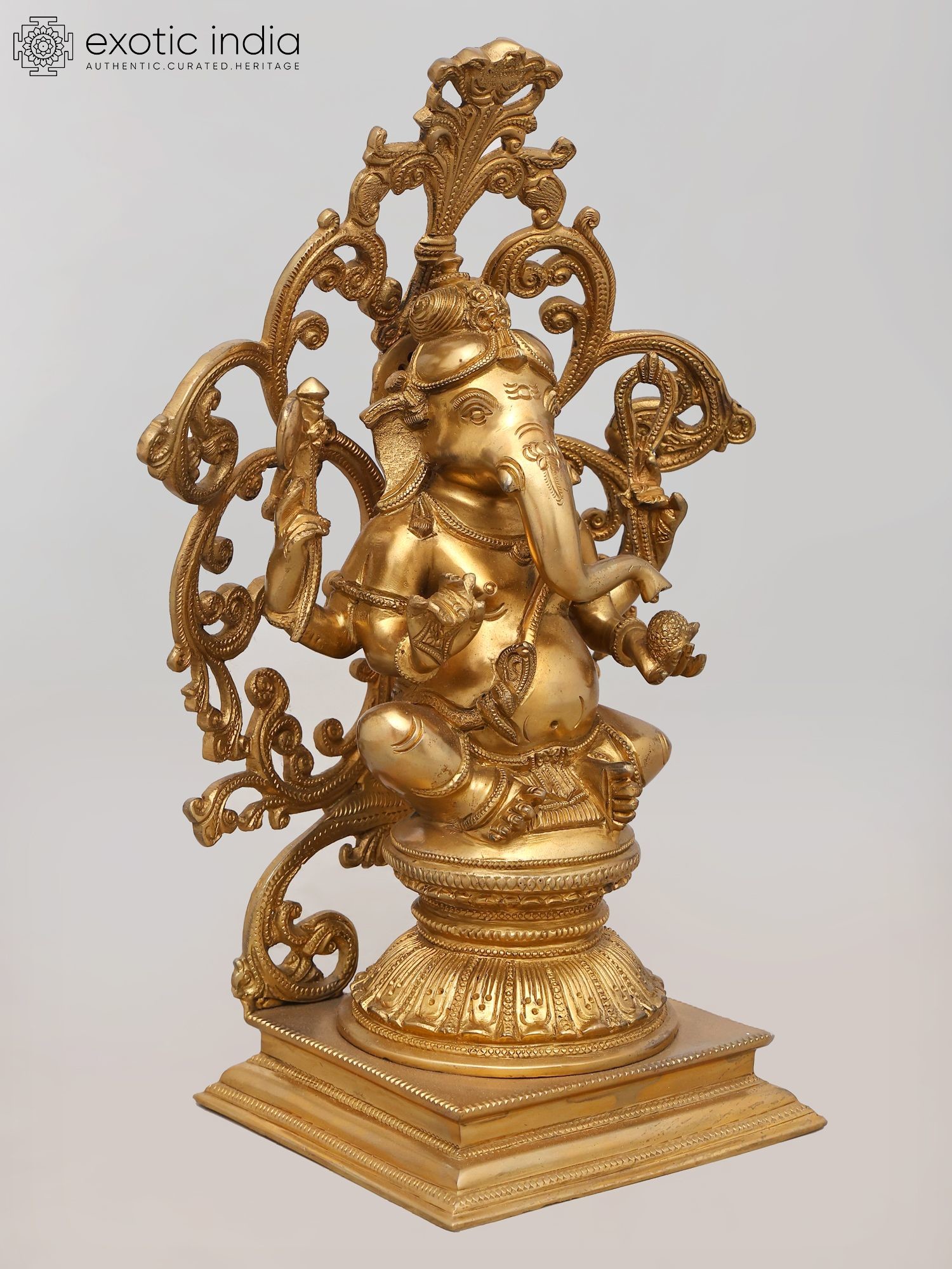 32" Large Size Blessing Ganesha Seated on Ashta-Ganesha Base In Brass | Indian Handcrafted Idol