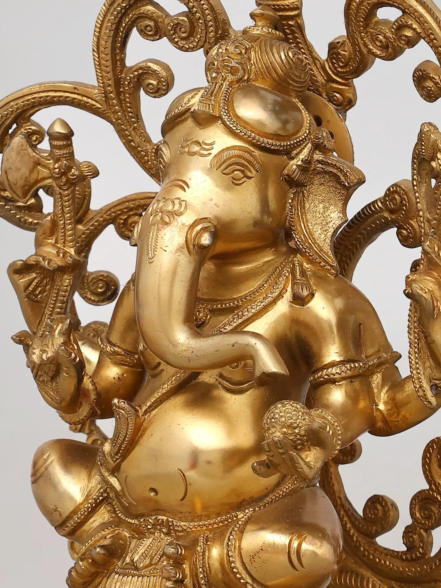 This brass sculpture depicts Lord Ganesha in a seated posture, symbolizing prosperity and wisdom.