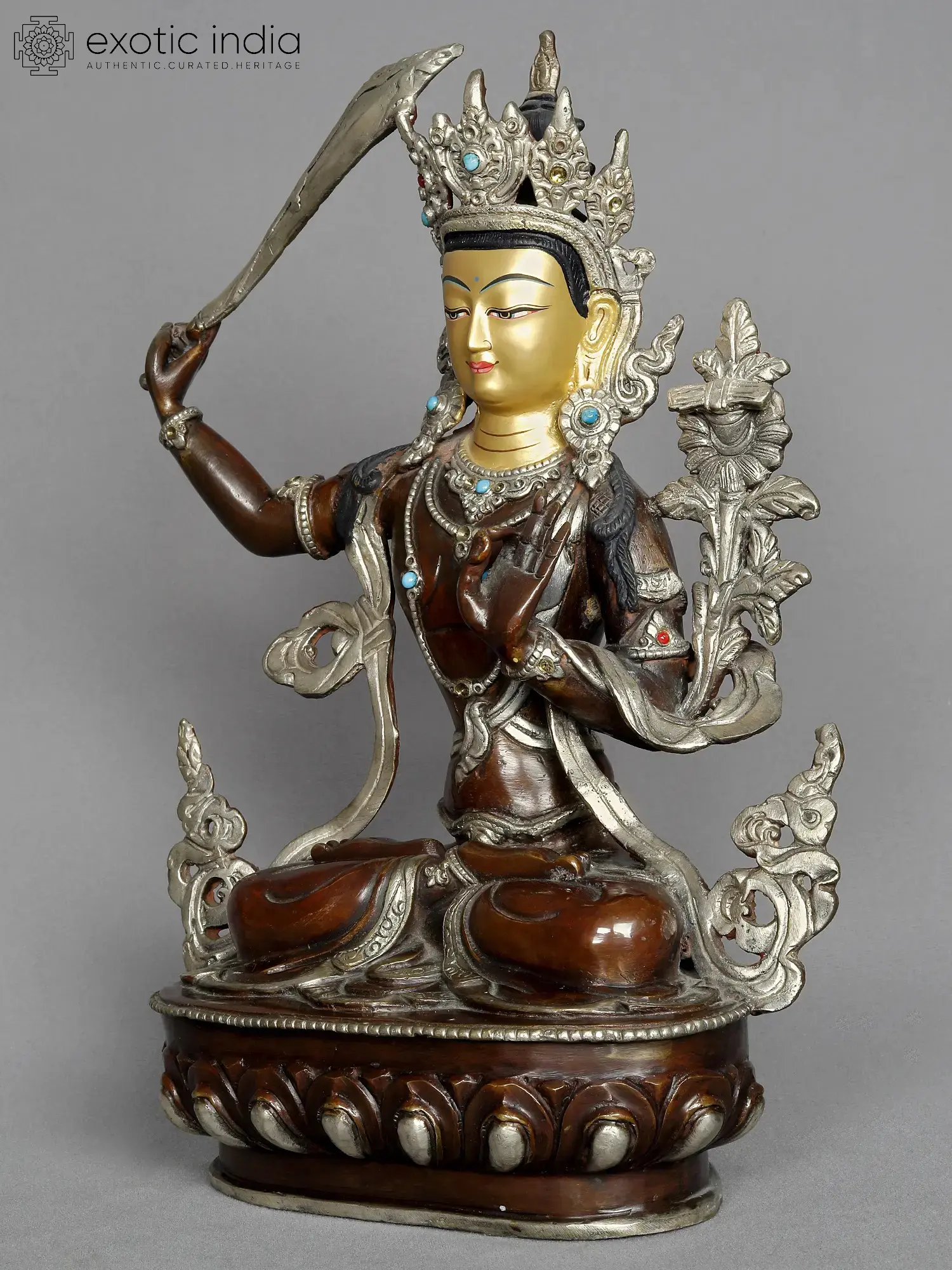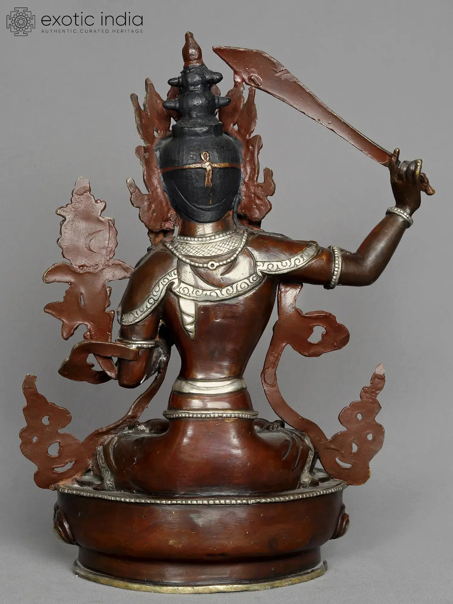 13" Manjushri Statue from Nepal | Copper Sculpture with Gold