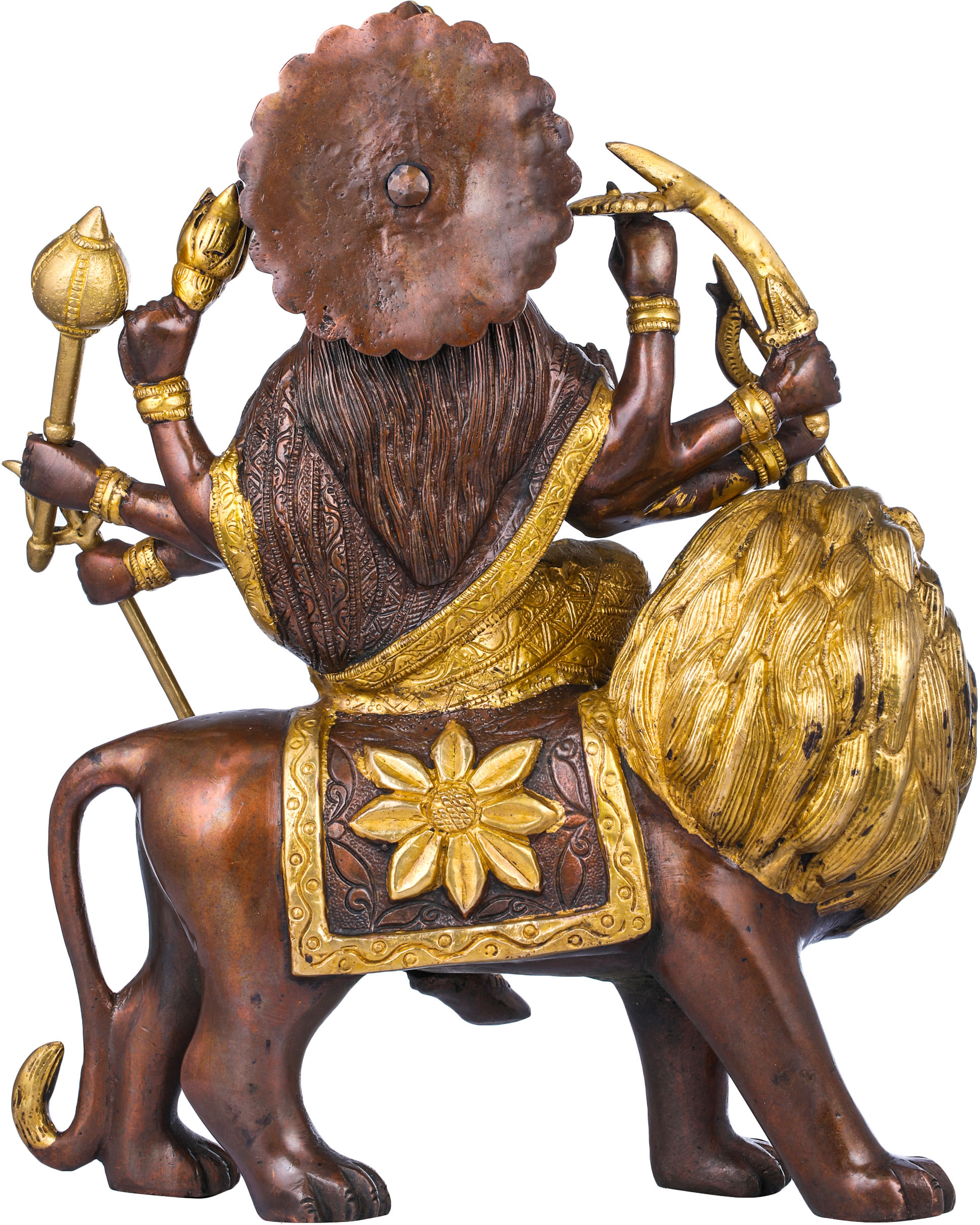 13" Mother Goddess Durga Seated on Lion In Brass | Handmade | Made In India