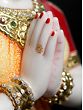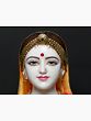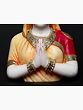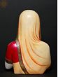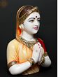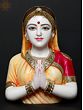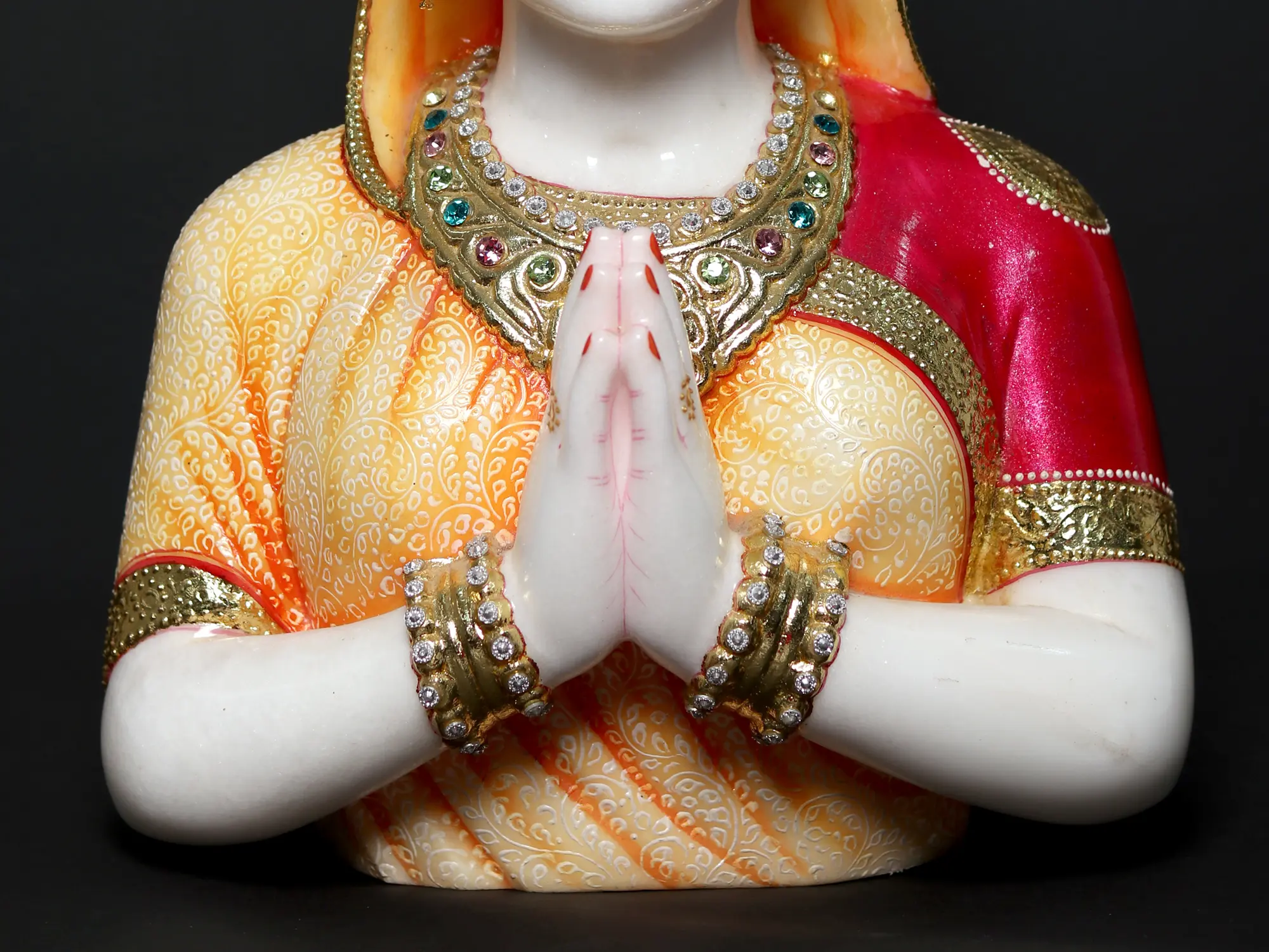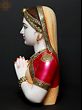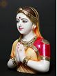 Made in illustrious marble, this Namaste woman bust is brought to you from the welcoming vibrance of Rajasthan. With a light smile and pleasant look in her eyes, she appears wearing the traditional Bandhani fabric of Rajasthan and the typical jewelry including the Bolna, Nath, and Churis as she joins her hands in the Anjali Mudra conveying respect and salutation through the gesture of Namaste - exemplifying Indian principle of devoted hospitality.