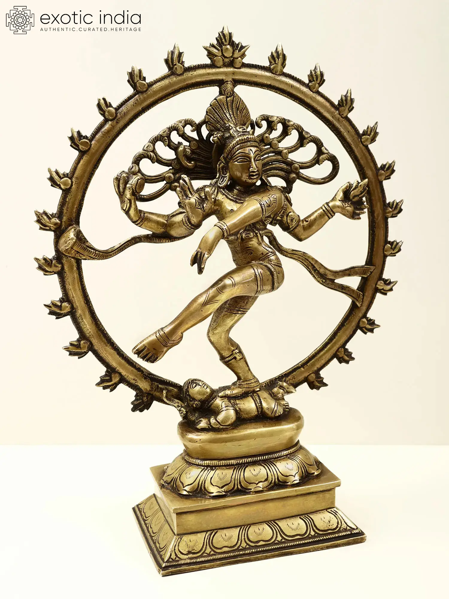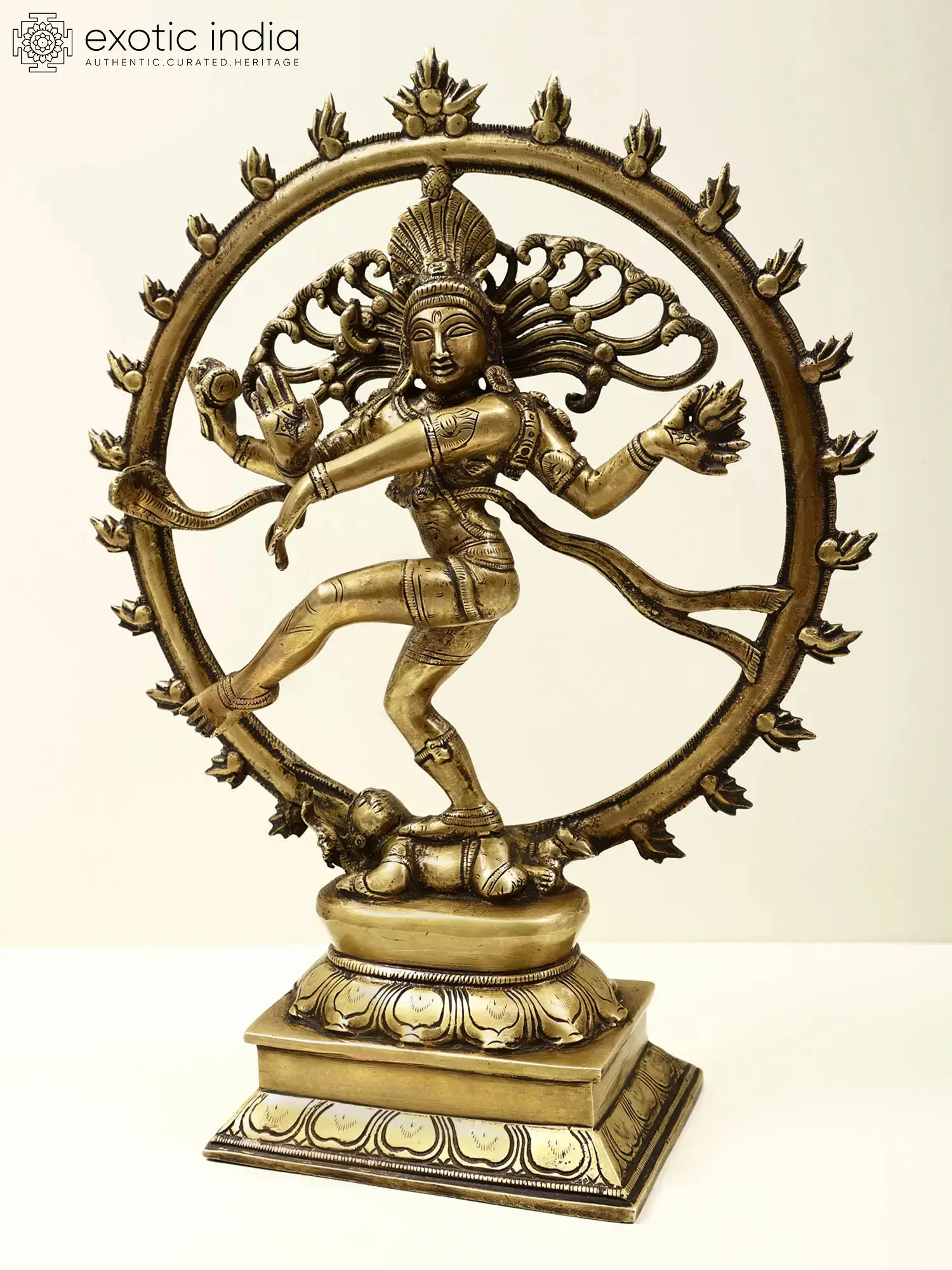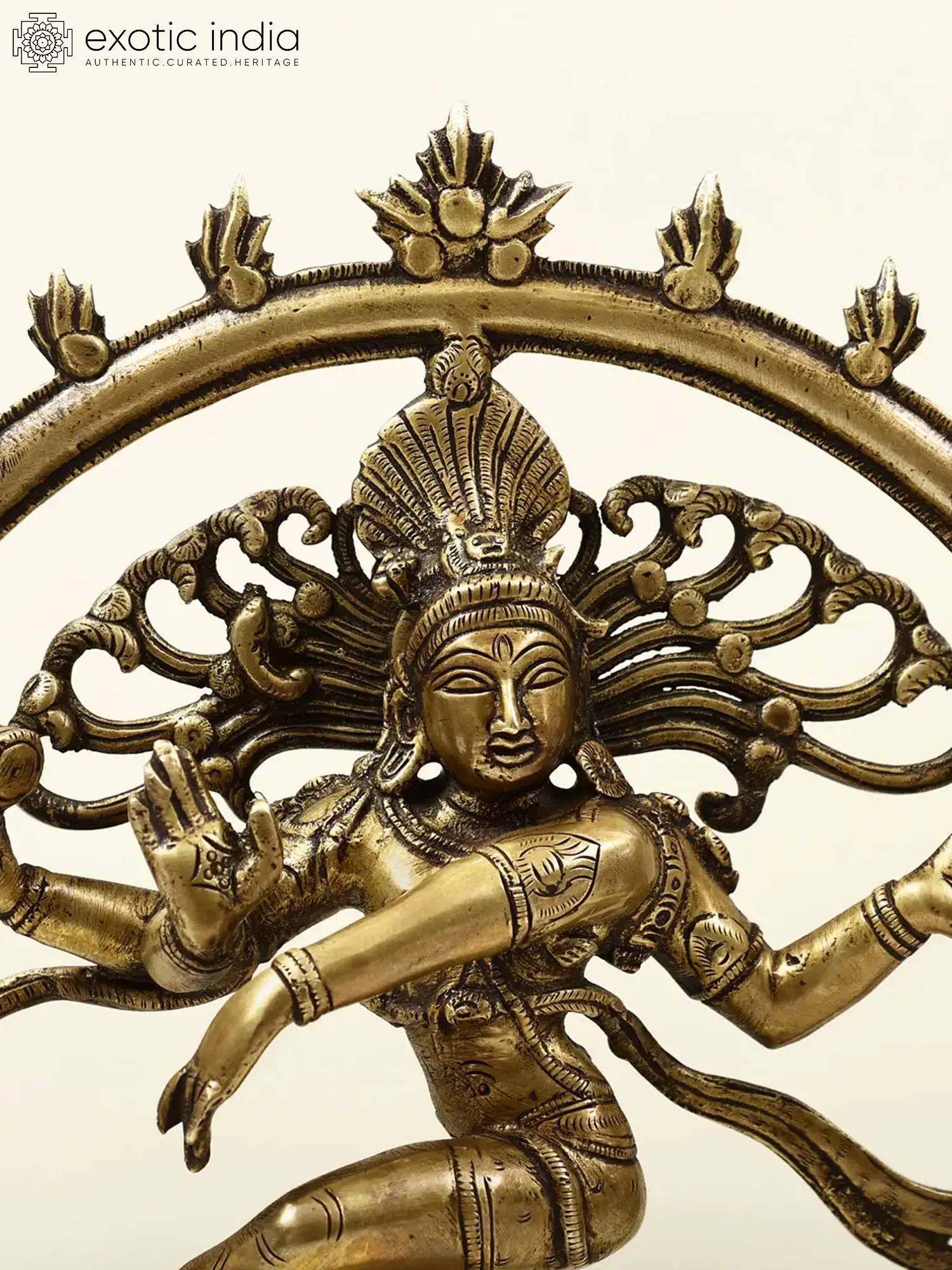 Nataraja, a divine embodiment of Lord Shiva, takes on the striking form of the Lord of the Dance. Often portrayed dancing within a fiery ring, Nataraja's dynamic posture features one leg raised and the other decisively subduing a demon, symbolizing victory over ignorance. Holding a drum and fire, representing creation and destruction, and adorned with a coiled snake around his neck, Nataraja's symbolism runs deep. This representation, known as the "Tandava," encapsulates the cyclical essence of creation, preservation, and destruction in Hindu philosophy.