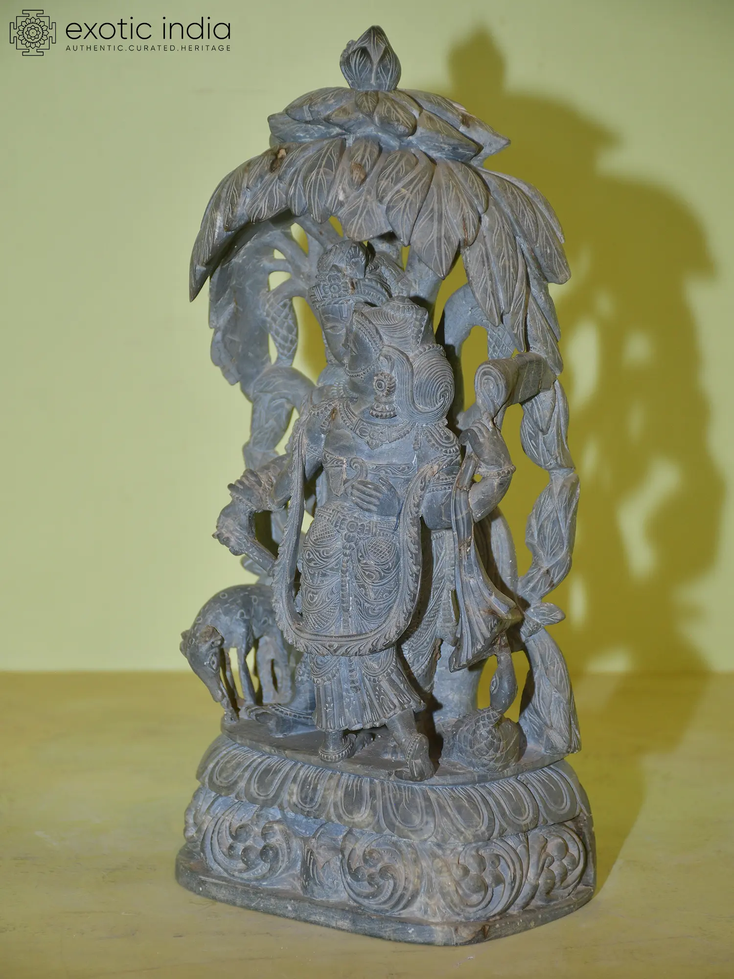 8" Lord Krishna with Cow | Orissa Stone Statue | Hand Carved