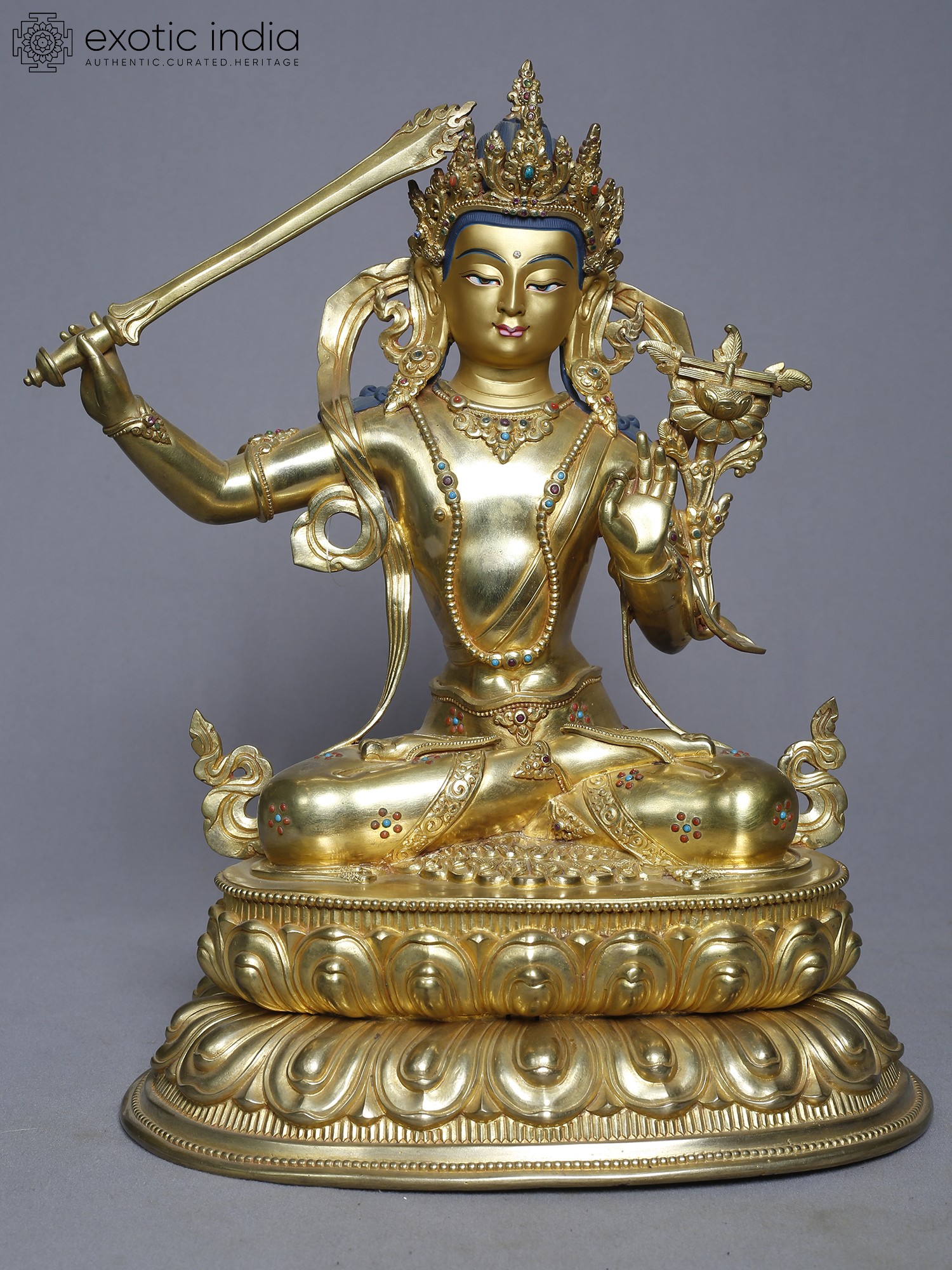 13" Manjushri Copper Statue from Nepal | Tibetan Buddhist Deity Idols