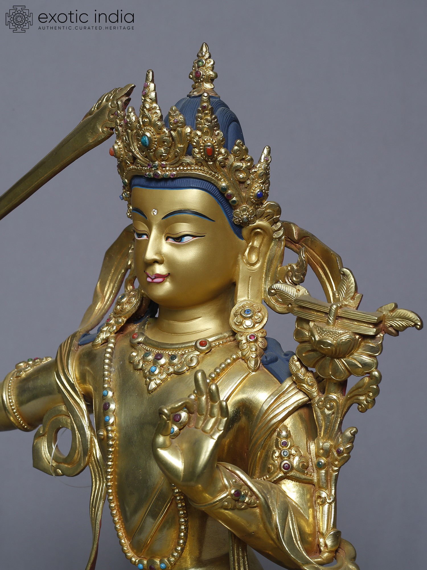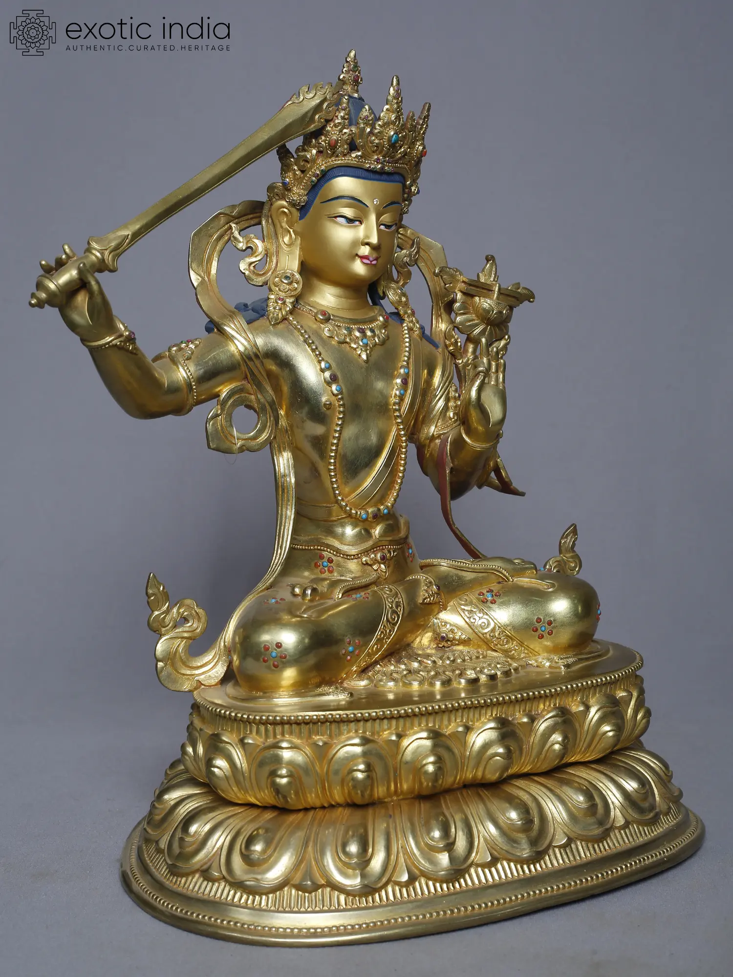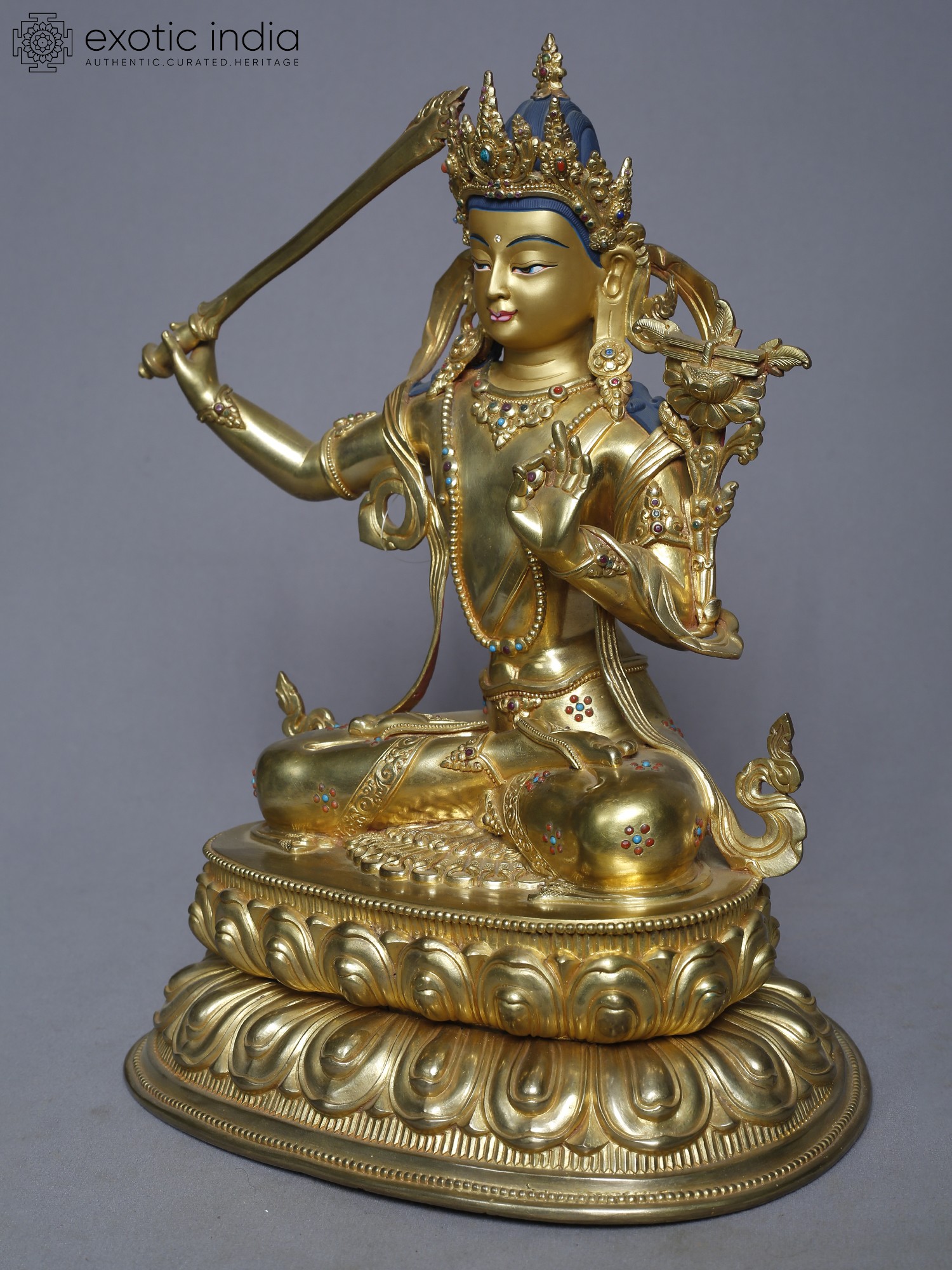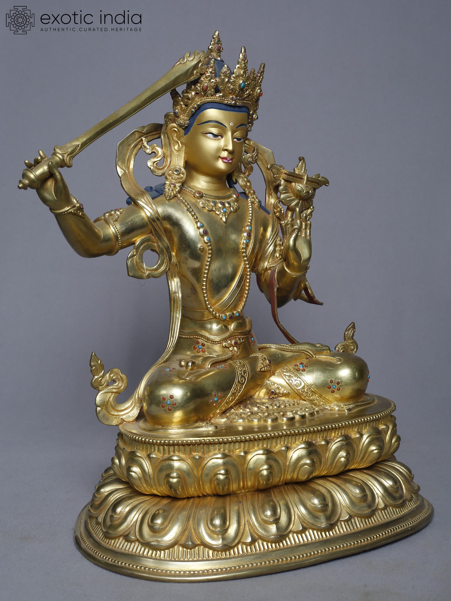 15" Manjushri Copper Statue from Nepal | Buddhist Deity Figurines