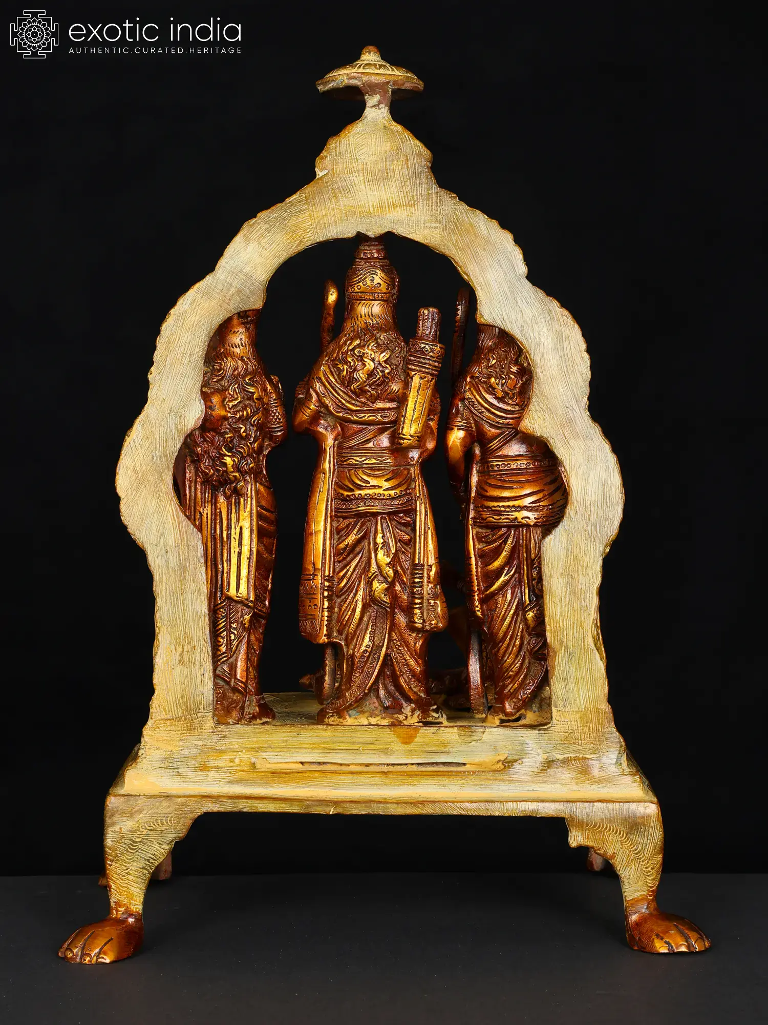 Step into the divine world of Lord Rama with our Shri Rama Durbar Brass Sculpture, cast with care in India. Shri Rama, the embodiment of dharma (righteousness) and duty, is depicted in regal splendour, accompanied by Sita, Lakshmana, and Hanuman. This sacred gathering represents the epitome of moral values and the pursuit of justice, fundamental concepts in Hindu philosophy. The intricate details, from Rama's royal attire to the devotion in Hanuman's eyes, reflect the skill and artistry of Indian craftsmen.