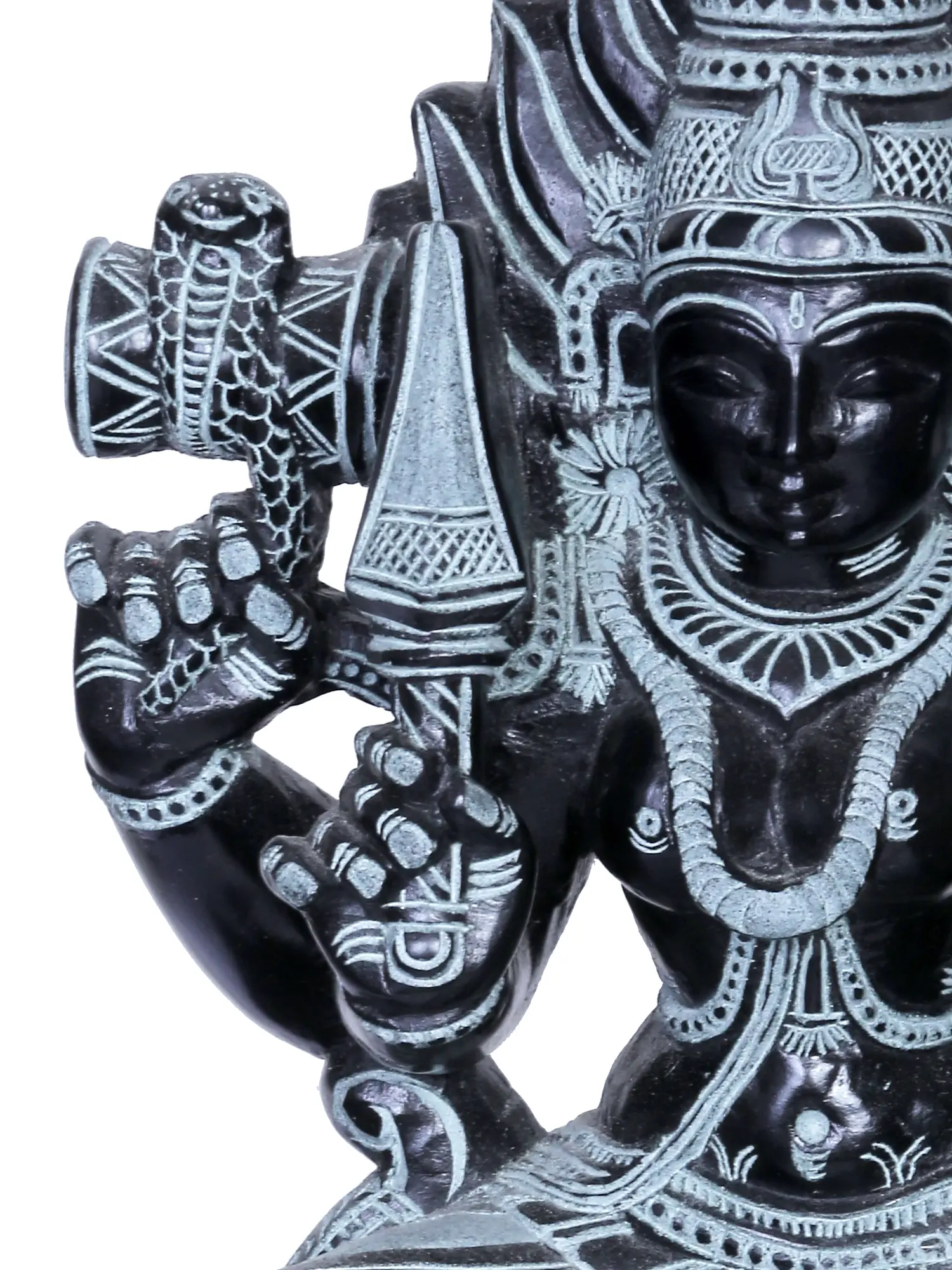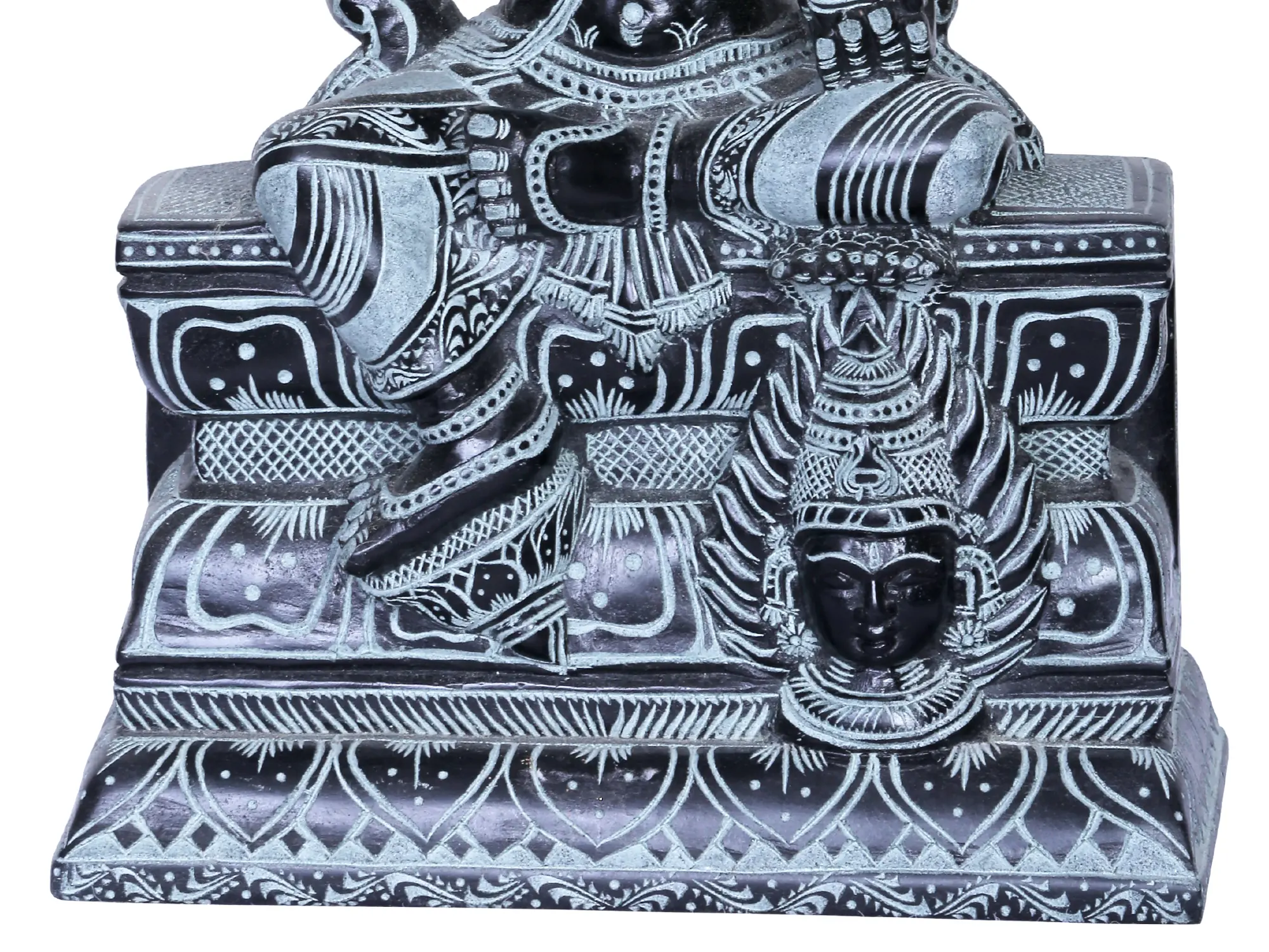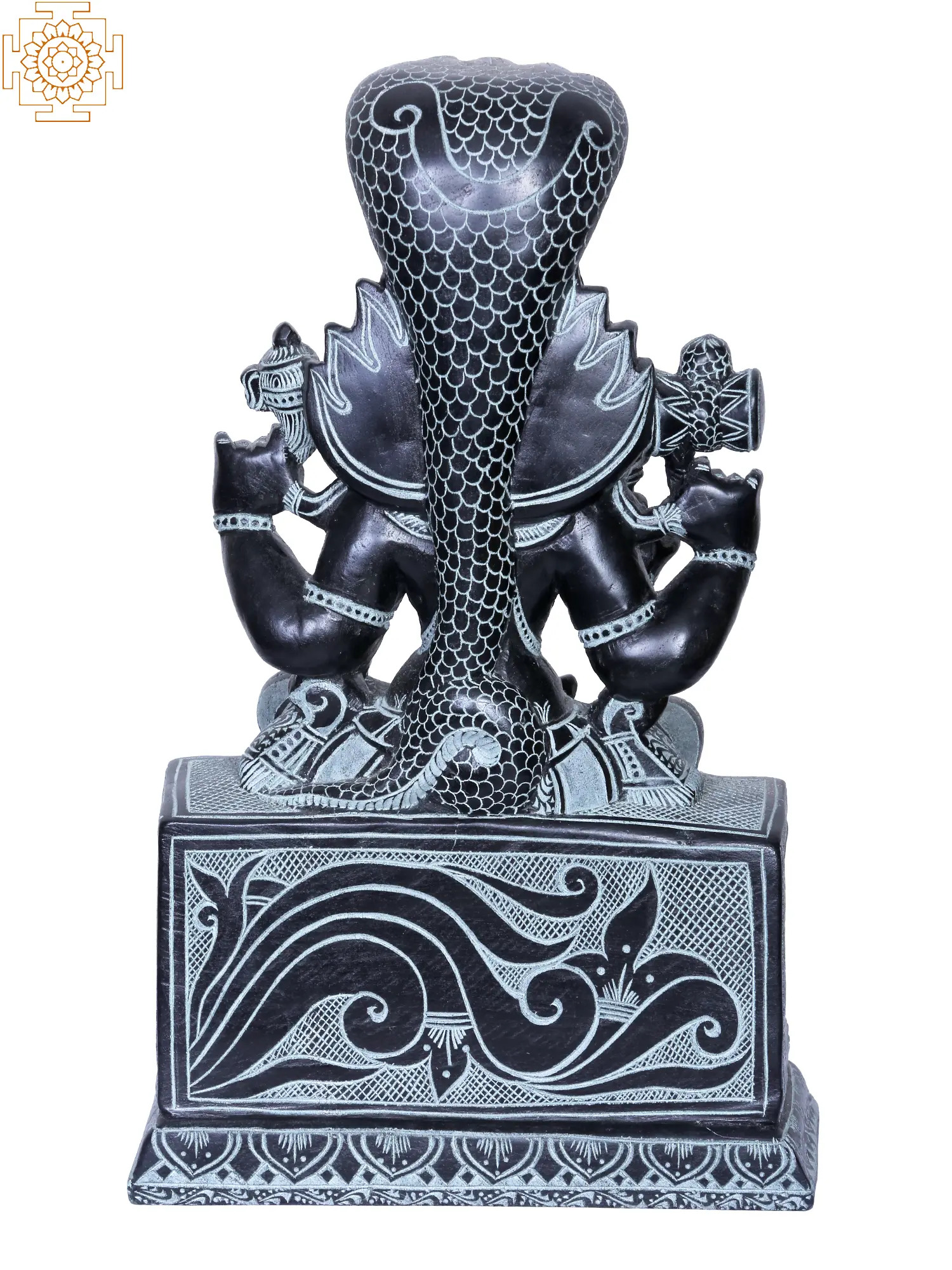 This exquisite stone sculpture captures the powerful presence of a revered deity, a protector and nurturer from the heart of South India. Crafted in Mahabalipuram, a UNESCO World Heritage site renowned for its ancient rock-cut architecture and sculptures, this piece embodies centuries of artistic tradition and deep spiritual devotion. The skilled artisans have meticulously chiseled this statue from stone, imbuing it with a sense of permanence and timeless grace. The deity is depicted seated, a posture of calm authority and benevolence. Above, a majestic serpent hood unfurls, its multiple heads forming a protective canopy. In Hindu mythology, serpents, particularly the Naga, are often associated with divine power, protection, and cosmic energy. They are seen as guardians of hidden treasures, both material and spiritual. The intricate detailing of the serpent's scales and the divine being's ornate adornments speak to the artist's mastery and the reverence for the subject.
