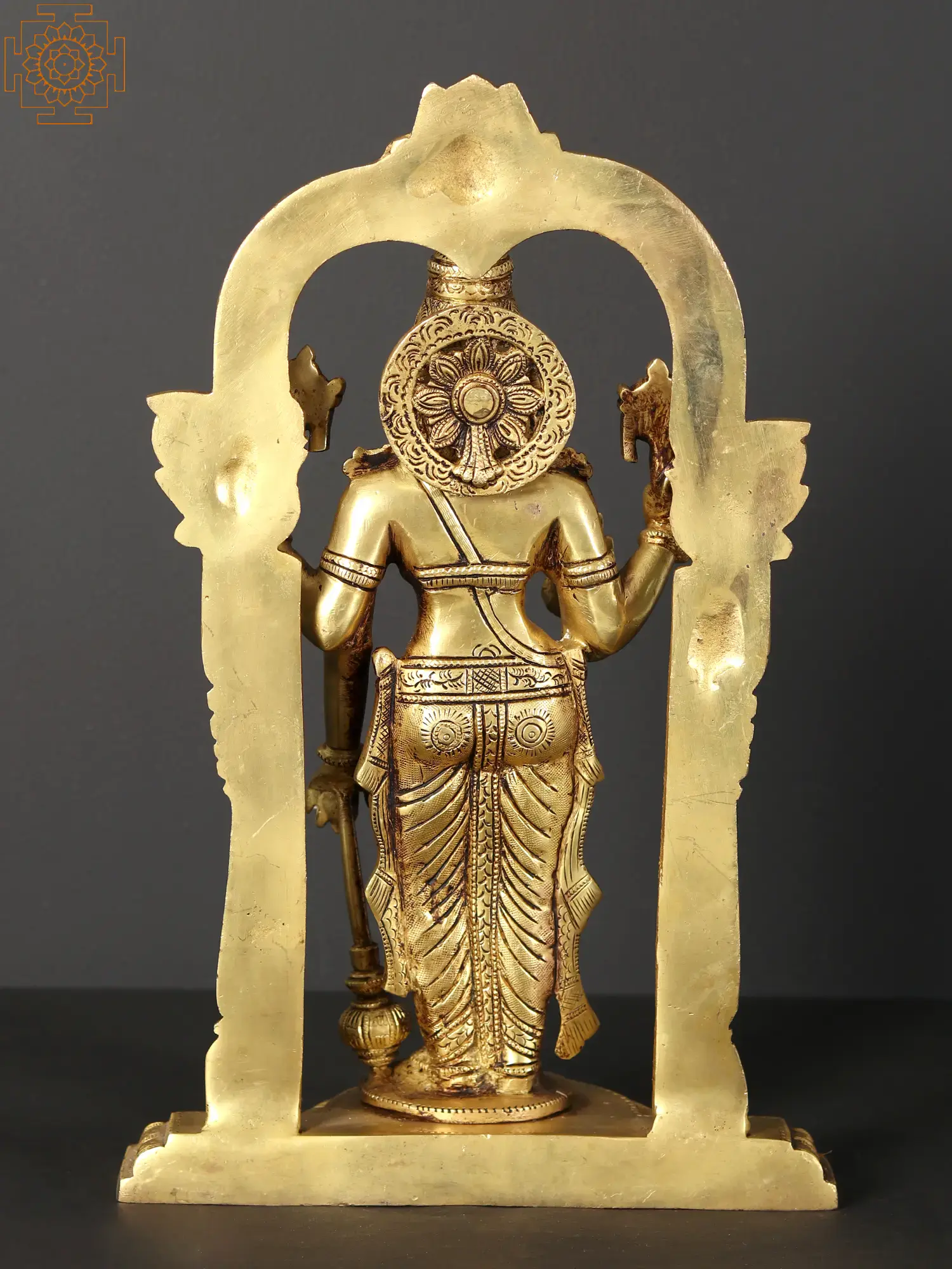 Each statue is meticulously crafted from high-quality brass, a metal associated with purity and auspiciousness in many cultures. The intricate detailing on their attire, jewelry, and the ornate throne speaks to the skill of the artisans. The Kirtimukha throne, a powerful symbol in itself, adds a layer of spiritual significance to the ensemble. It is believed to protect against negative energies and invite blessings, making this set not just a beautiful object but a potent talisman for abundance and peace. The statues stand tall, creating a commanding presence that inspires devotion and reverence.