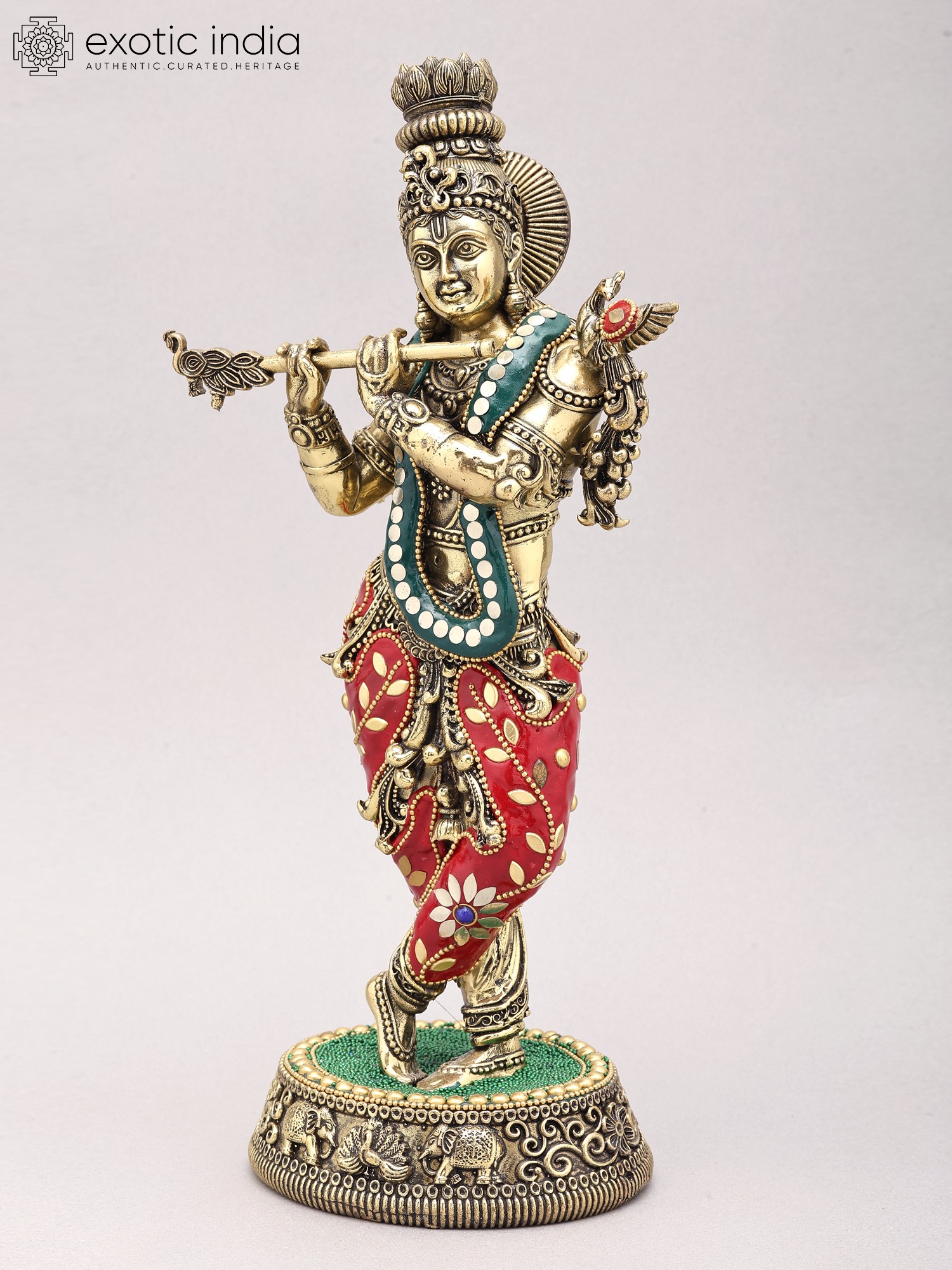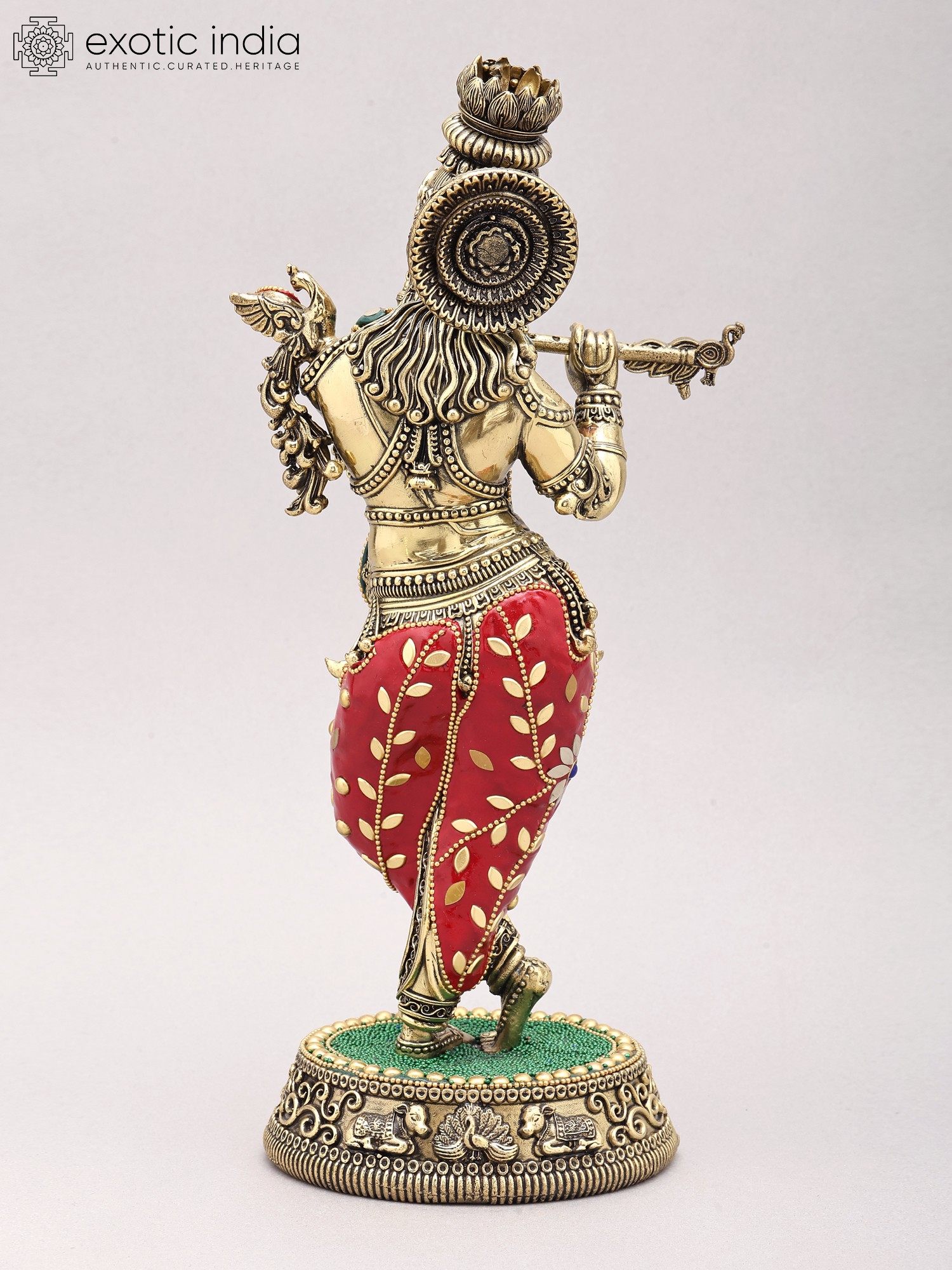 13" Lord Krishna Playing Flute In Brass | Handmade | Made In India
