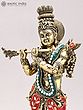 Brass Statue: Krishna Gopala Playing Flute - 13" Traditional Attire
