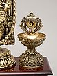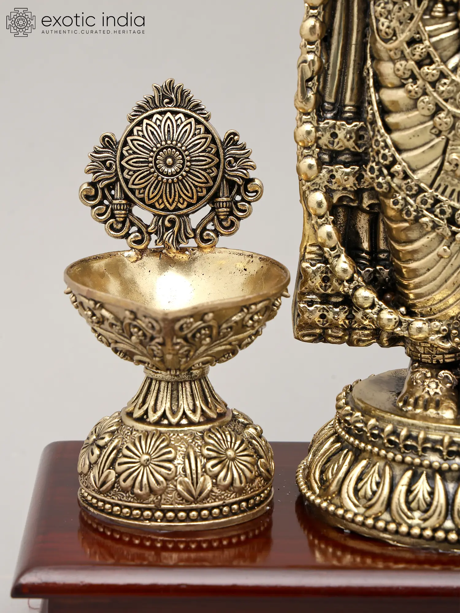 7" Superfine Seated Goddess Dhanalakshmi with Oil Lamps and Wood Base | Brass Sculpture