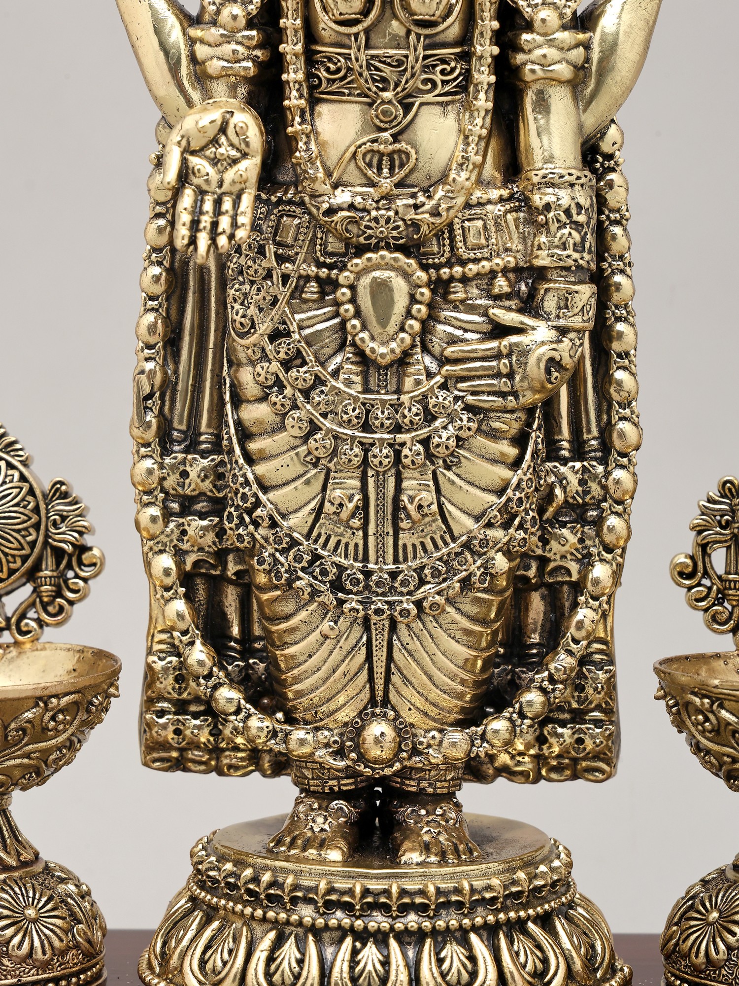28" Ornamented Venkateswara Balaji | Wall Hanging | Brass and Wood