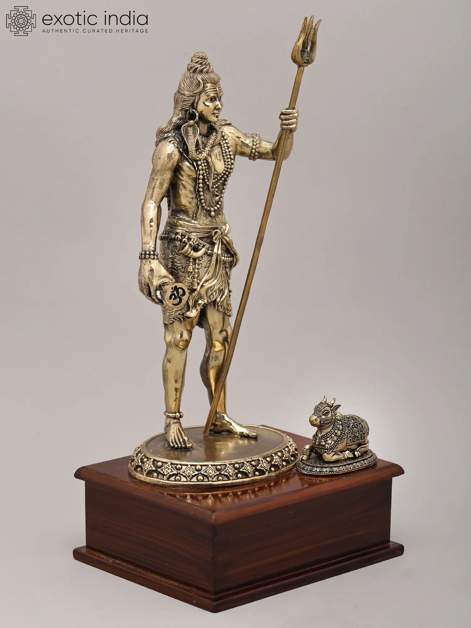 13" Silver and Gold Brass Nandi - The Vehicle of Lord Shiva