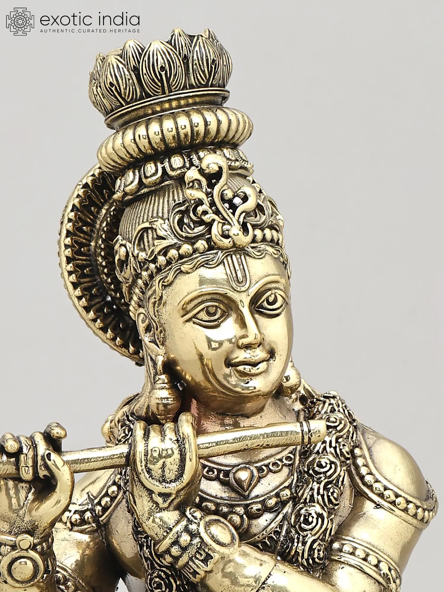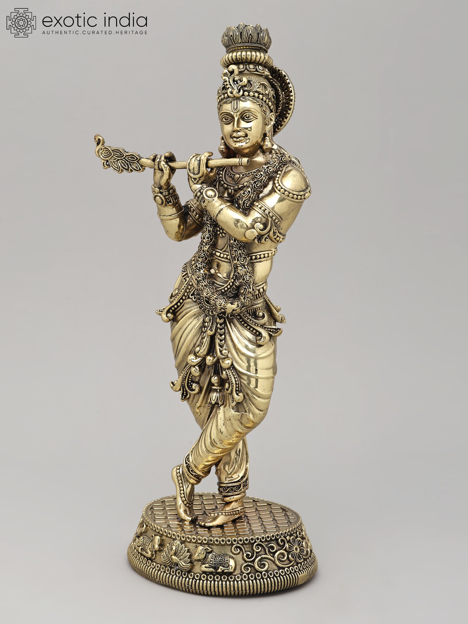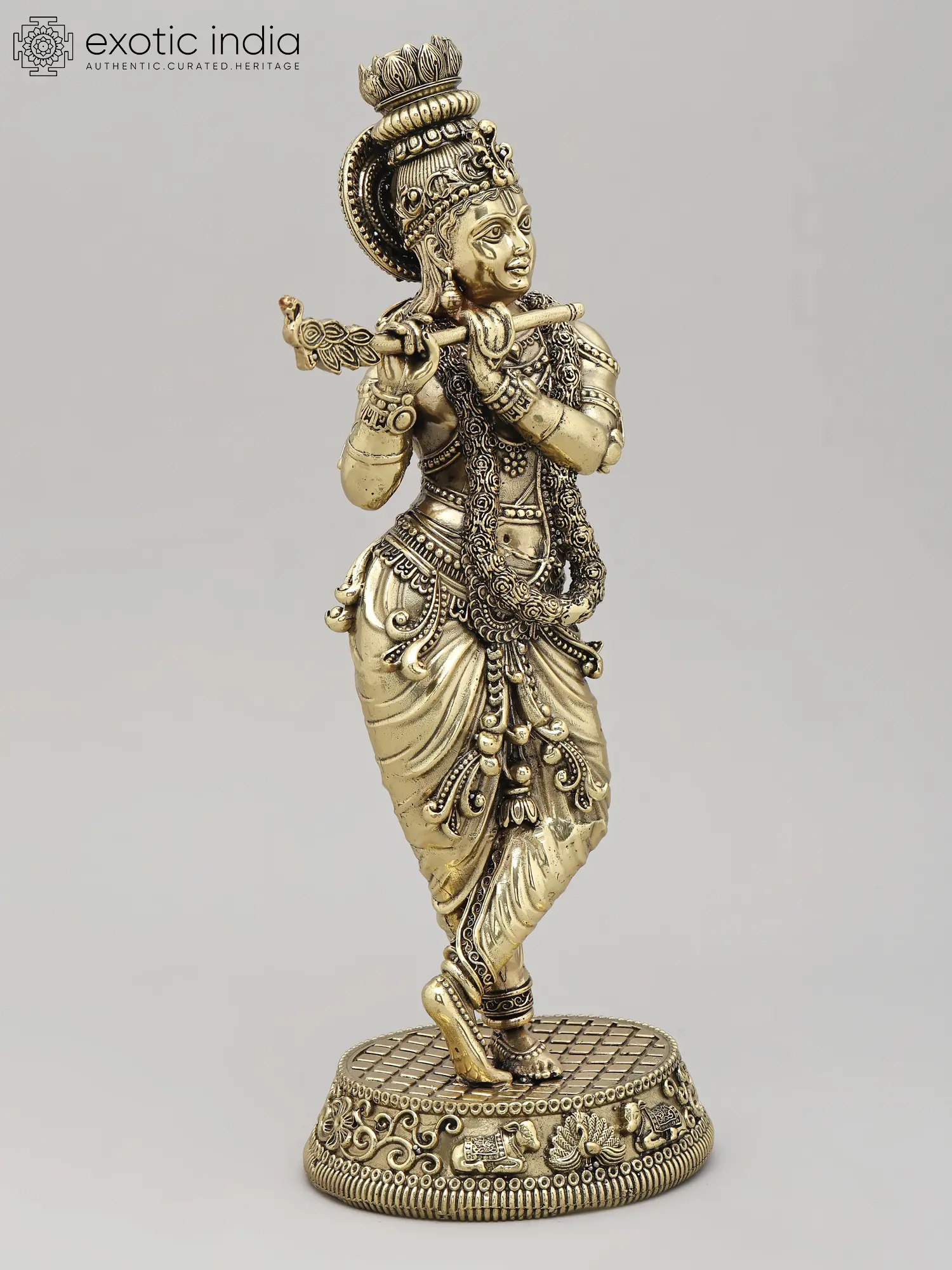 16" Murli Krishna Brass Statue | Handmade | Made in India