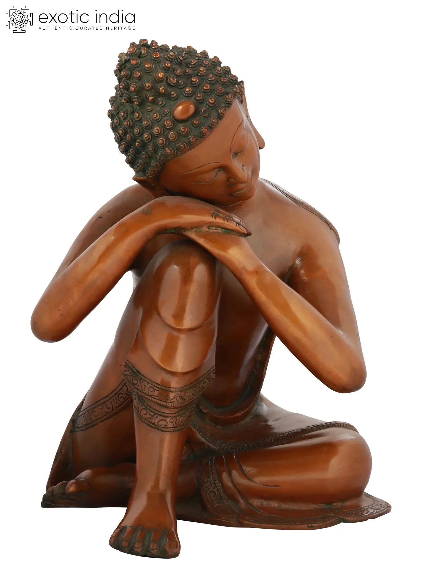 Experience the serenity of ancient wisdom with this intricately crafted Buddha brass sculpture. This masterpiece emanates tranquility and enlightenment, making it a perfect addition to your space for meditation and reflection. The Buddha's serene expression and graceful hand gestures convey inner peace and compassion. His piece of robe and halo of enlightenment symbolize purity and spiritual awakening. This sculpture not only serves as a decorative piece but also as a source of inspiration for your spiritual journey. Crafted with precision and devotion by skilled artisans, it captures the essence of Buddhism's profound teachings, bringing a sense of harmony to your surroundings.