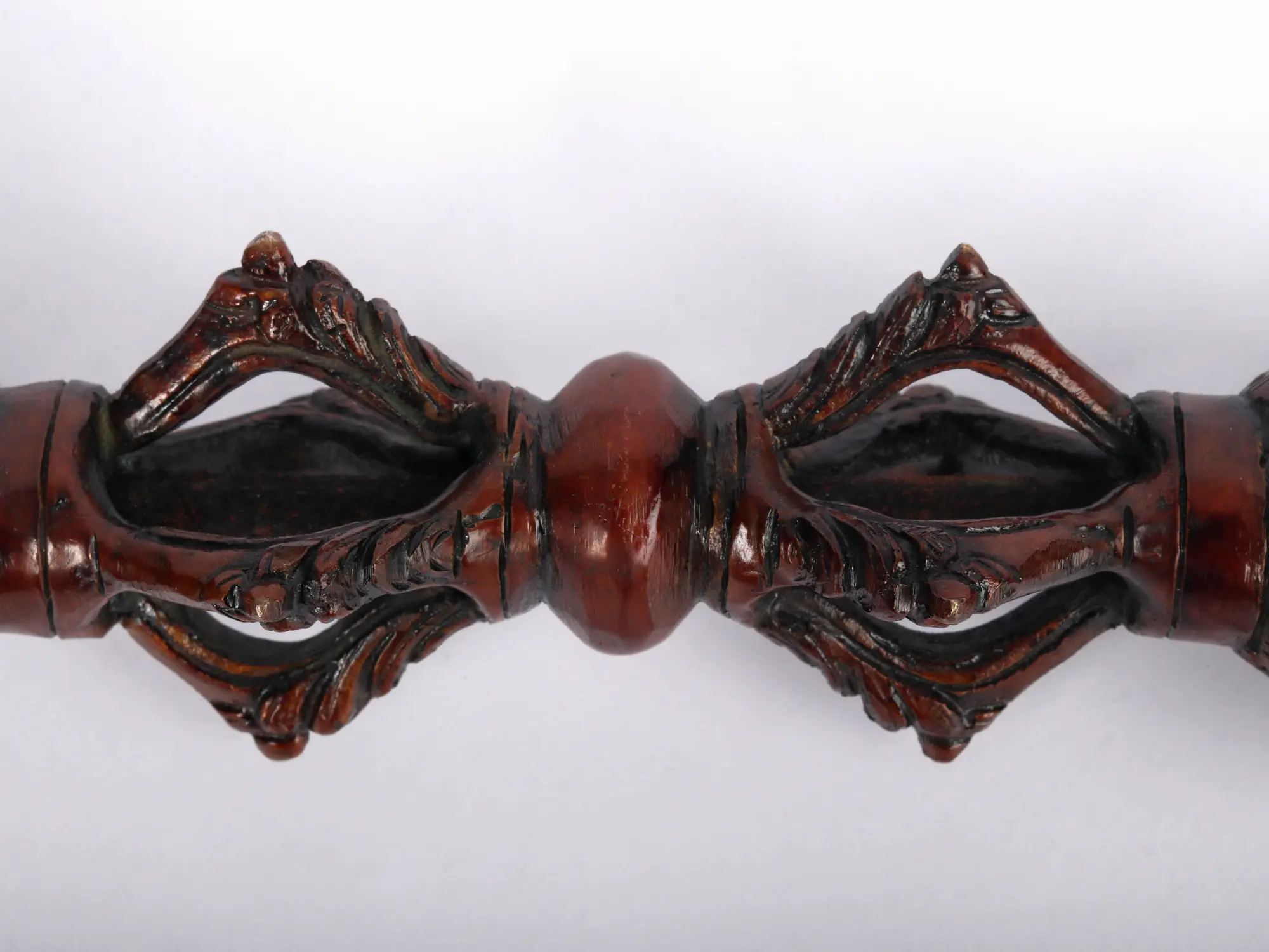 This artifact is a testament to the rich artistic heritage of India, a land deeply intertwined with spiritual traditions. Handmade with skill and devotion, it embodies the meticulous attention to detail characteristic of Indian craftsmanship. The warm, lustrous finish of the brass, combined with the deep, rich tones of the carved elements, creates a visually striking piece that is both powerful and aesthetically pleasing. Owning such an object is not merely acquiring a decorative item, but rather inviting a piece of sacred artistry into your life, one that carries the blessings and potent energies of Tibetan Buddhist iconography.
