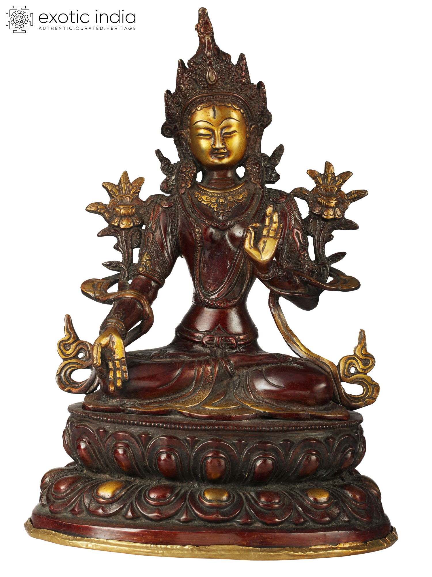 13" Tibetan Buddhist Goddess White Tara In Brass | Handmade | Made In India