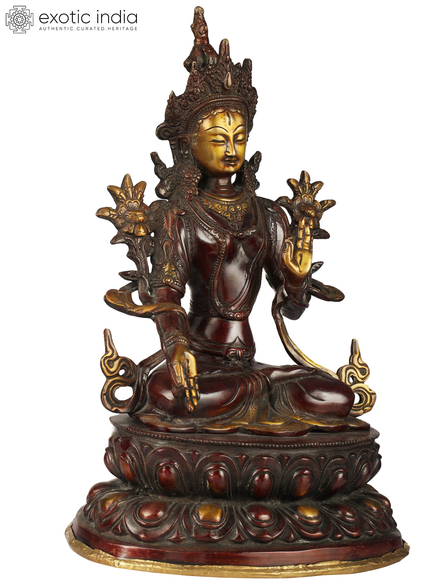 Tara is an important and revered deity in Tibetan Buddhism who appears as a female Bodhisattva. Buddhist monks and followers meditate on the image or deity of Tara to develop some good qualities such as compassion and kindness. Tara is known as the mother of compassion or liberation and is considered the female aspect of Avalokiteshvara (who possesses the compassion of all Buddhas). She manifests in different forms such as Green Tara and White Tara. Green Tara is associated with fearlessness and White Tara, as radiant as the moon, is associated with good health. Tara also appears in red, blue, and yellow colors.