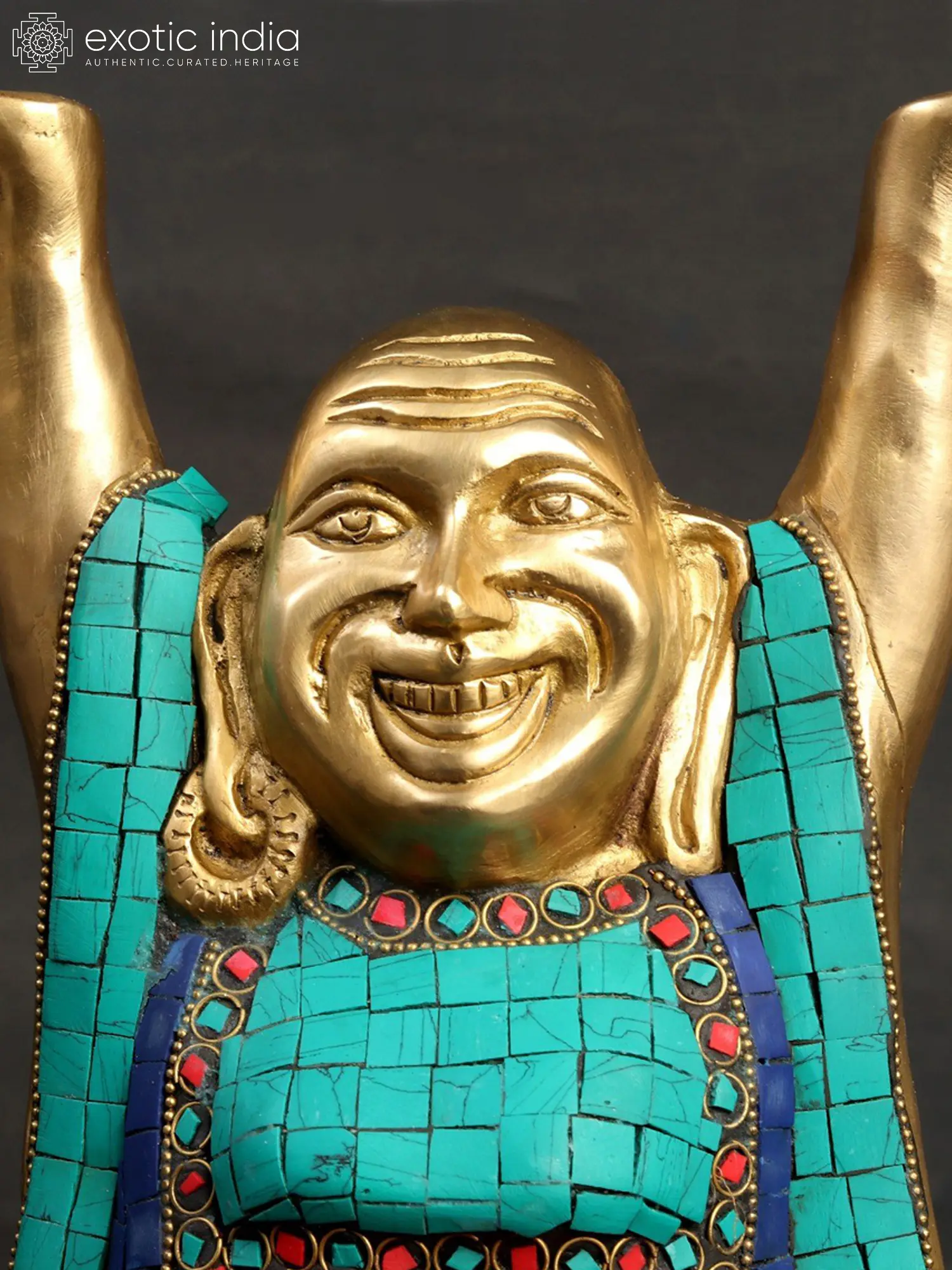 The laughing Buddha is the Oriental staple when it comes to symbols of welcome. Usually placed within a rectilinear view of the entrance to homes and offices, this laughing Buddha from the Exotic India collection will be sure to add great sprightliness to your interiors.