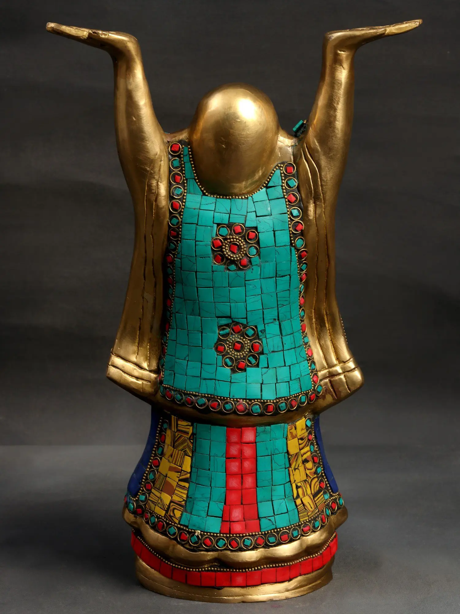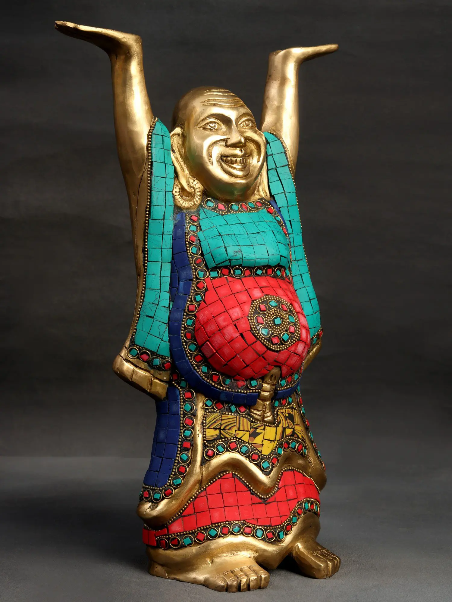 Look at how the glazing and pastel inlay seemingly complement the mirthful composure of countenance. The Laughing Buddha is a symbol of happiness, contentment, and prosperity.