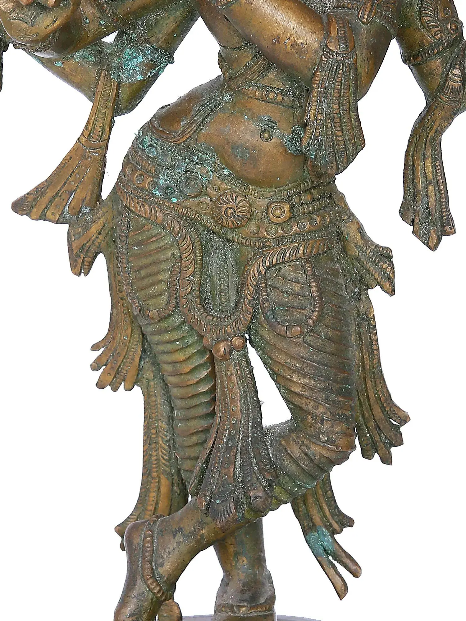 Lord Krishna, the handsome Vrindavan cowherd. Made from panchaloha in Swamimalai, by artisans from a long line of sculptors. The beauty of this Krishna idol merely begins to explain why the young milkmaids were so irresistibly into Him, such is the perfection of form and the serenity of stance of this Krishna murti.
