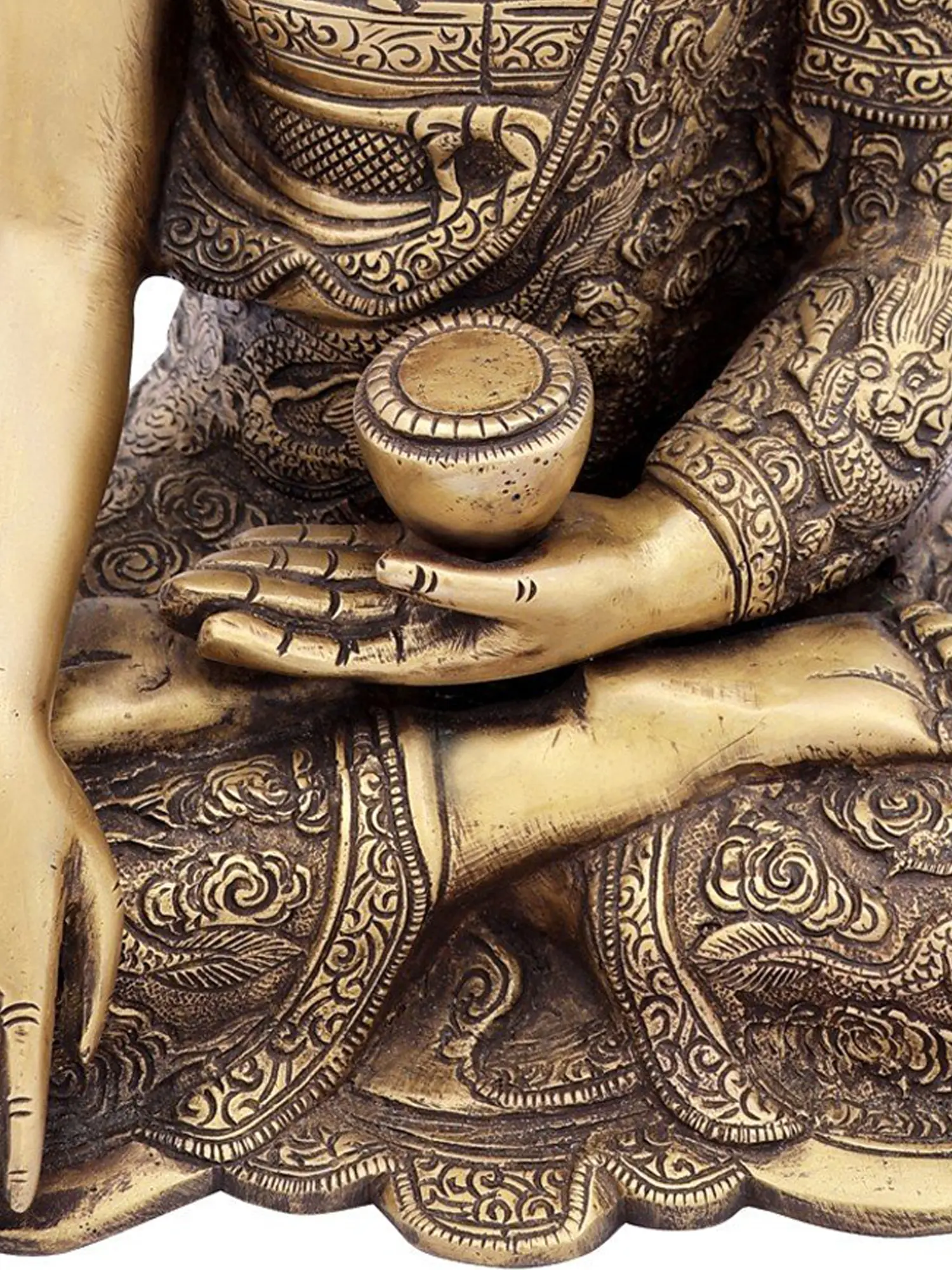 14" Bhumisparsha Buddha in Brass | Handmade | Made In India