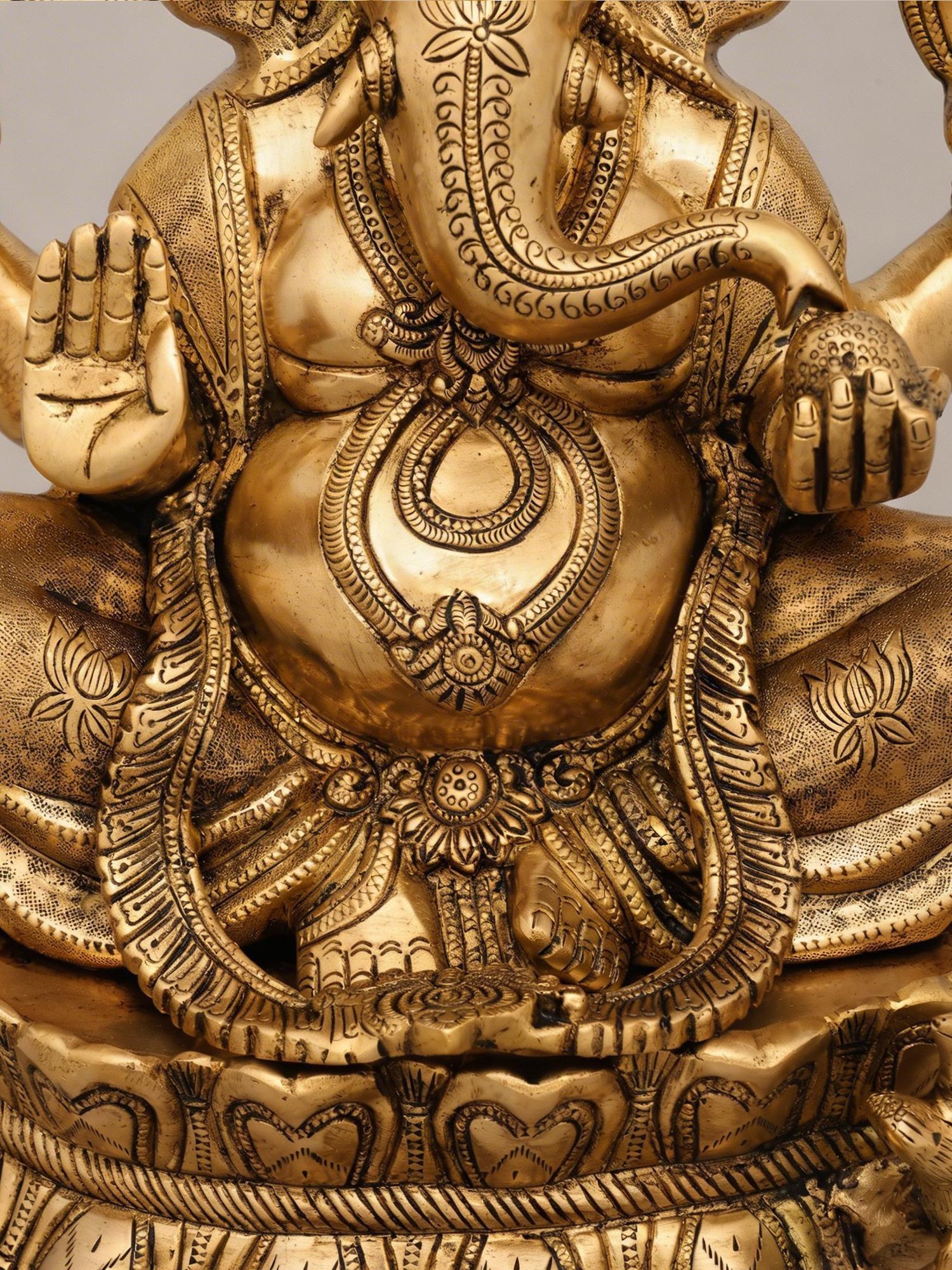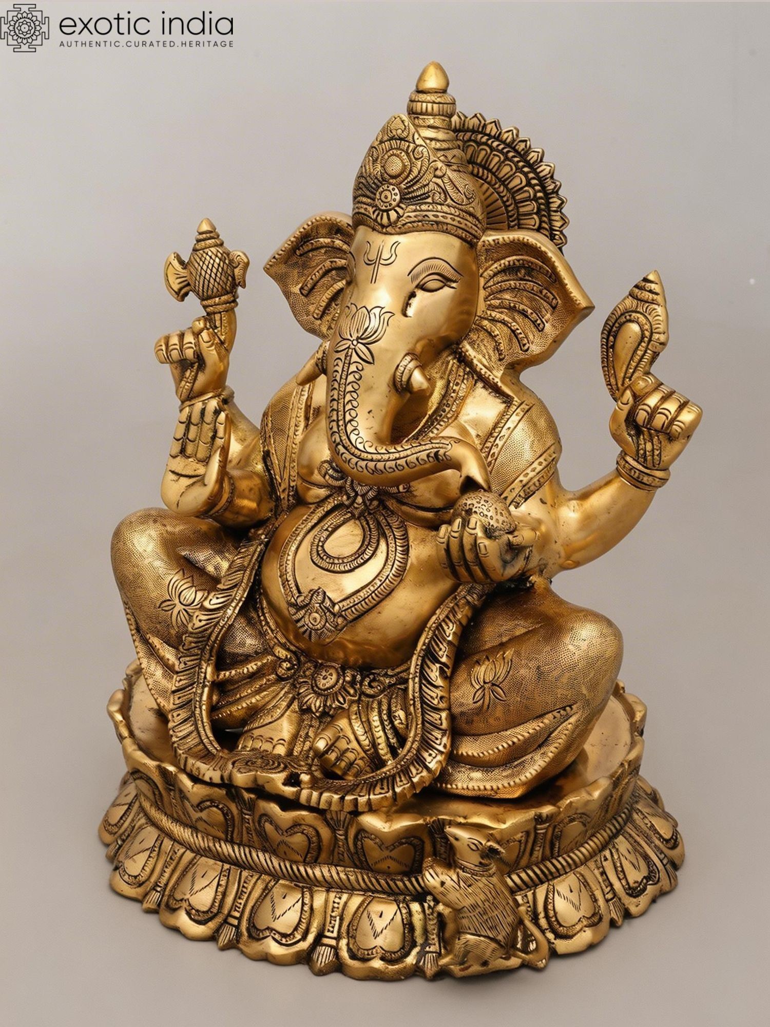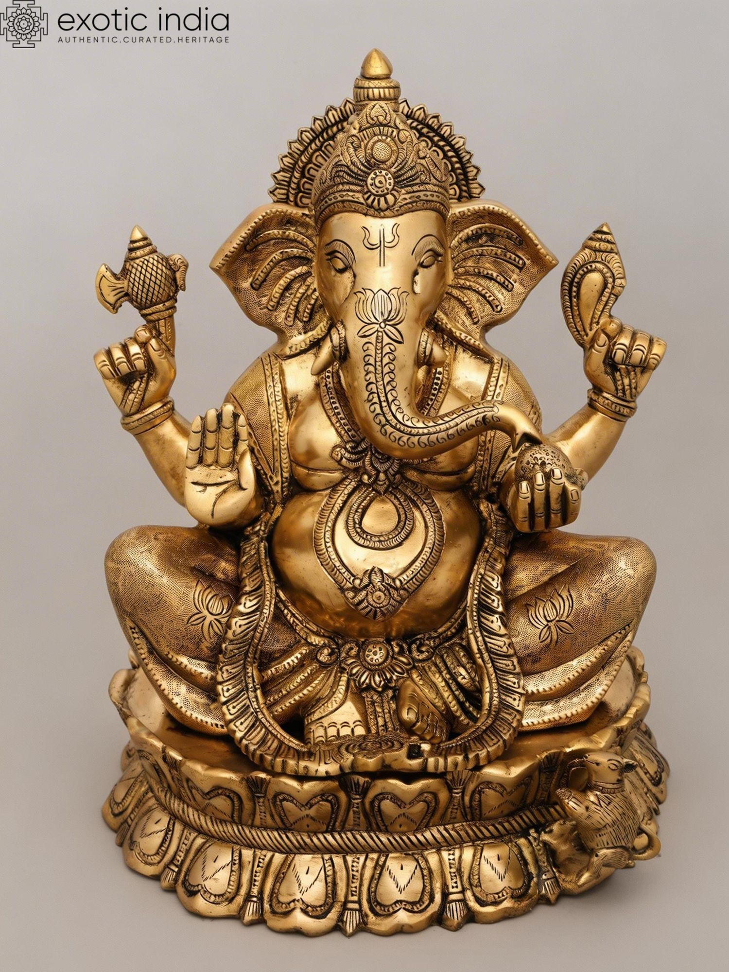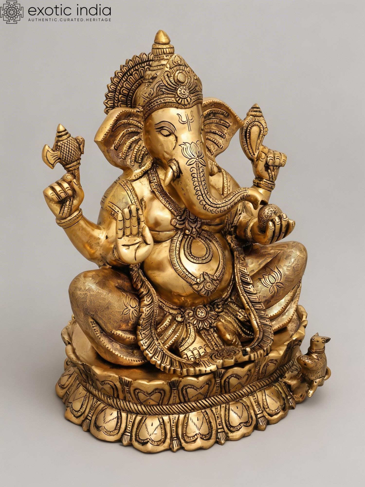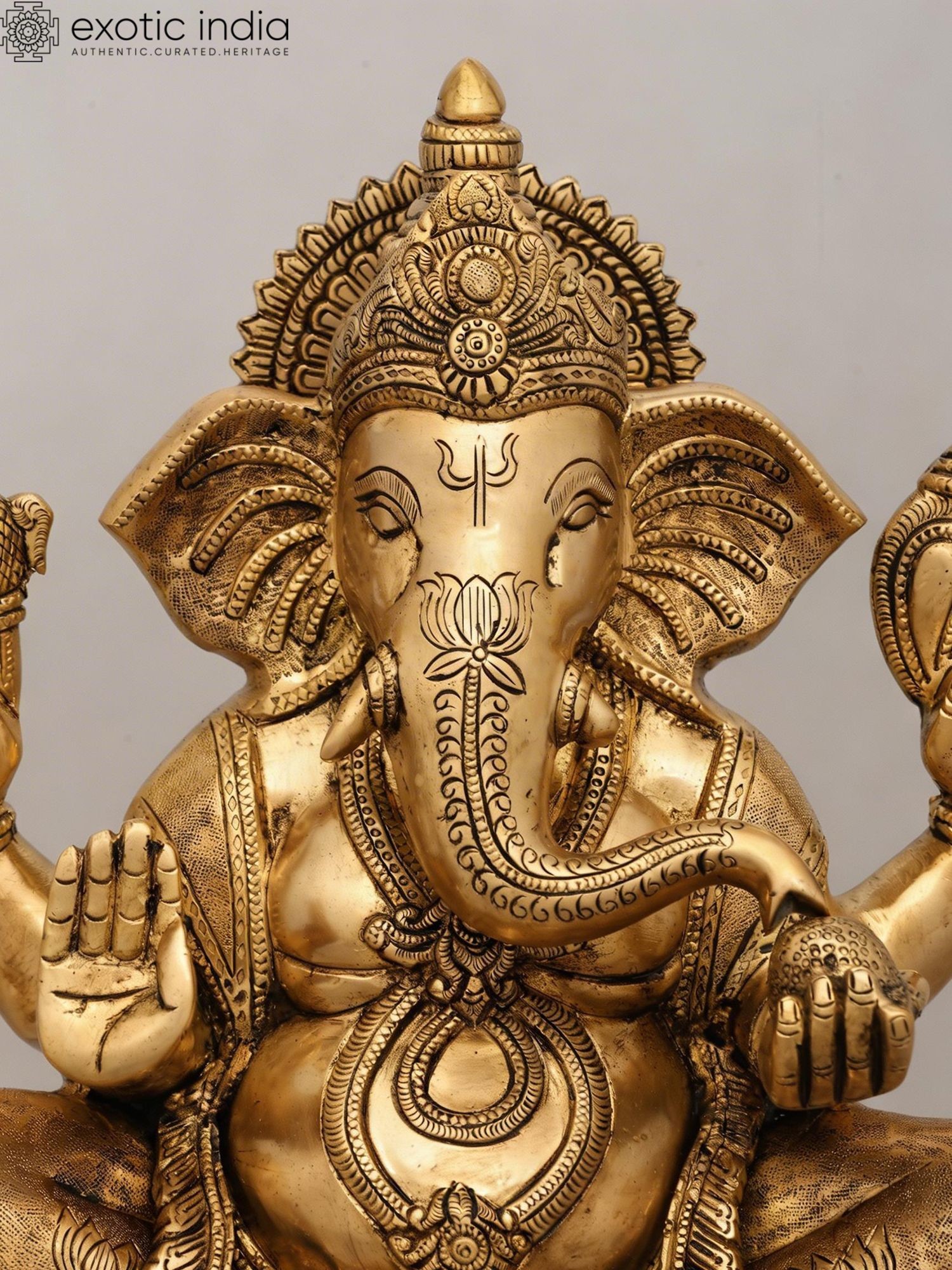 16" Lord Ganesha Statue Granting Abhaya in Brass | Handmade Idols | Made in India
