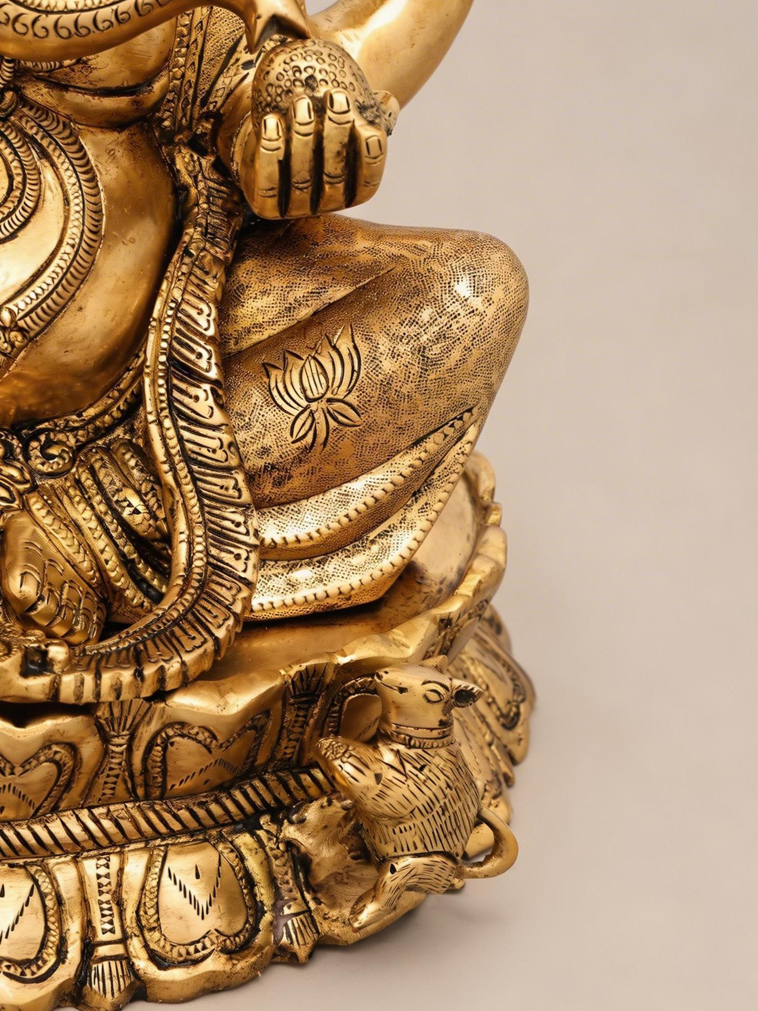 Symbolizing purity and spiritual awakening, the lotus base enhances the divine aura.