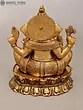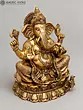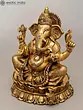 6" Small Four Armed Sitting Lord Ganesha | Brass Statue with Inlay Work