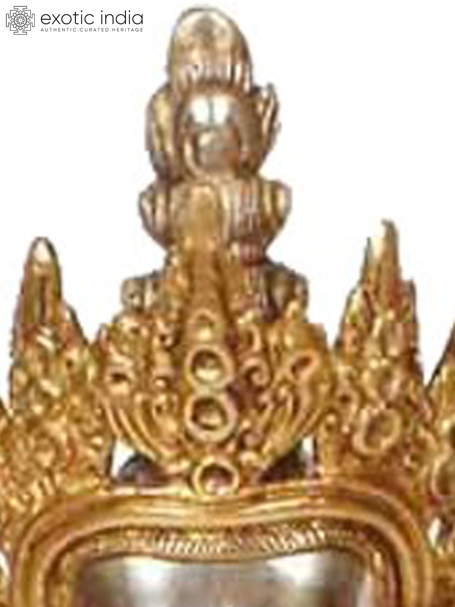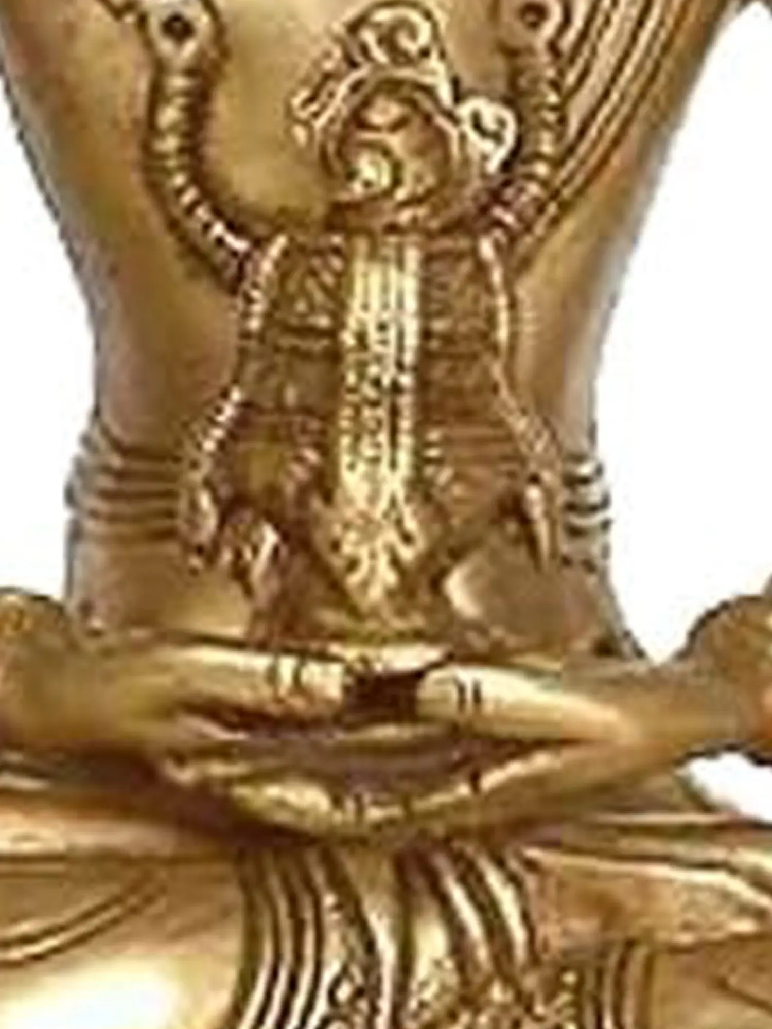 Amitabh Buddha, steeped in meditation, is an iconic representation of profound contemplation and spirituality in Buddhism. The image captures the Buddha in a serene and meditative posture, exuding an aura of transcendental peace. With closed eyes and a composed expression, Amitabha reflects in tranquility and deep insight. This form of Buddha is often associated with the Pure Land Buddhism tradition, where Amitabha presides over the Western Pure Land, a realm of ultimate enlightenment and liberation. Amitabha Buddha embodies compassion and limitless light, symbolizing the path to enlightenment and the aspiration to be reborn in his Pure Land.